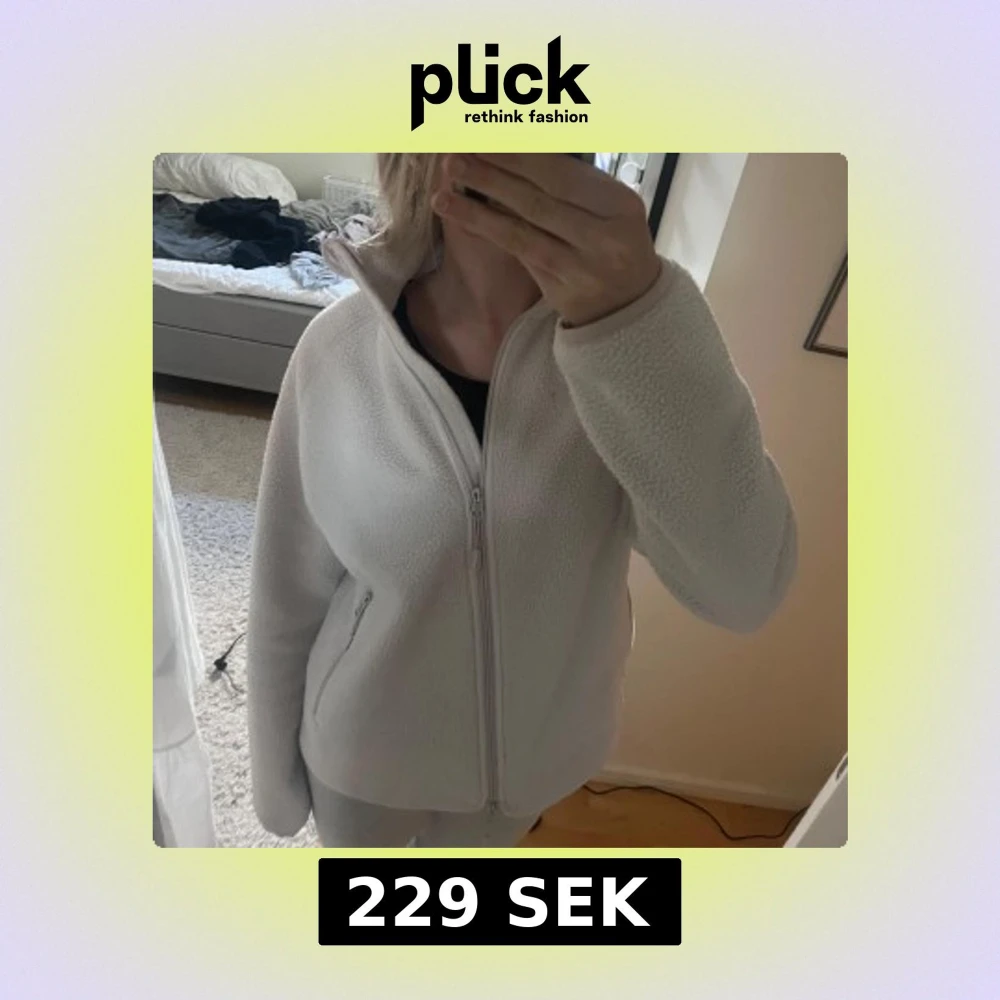 Mysig vit fleecejacka med hög krage och hel dragkedja framtill. Jackan har två sidofickor med dragkedja och en enkel, stilren design. Perfekt för kyliga dagar och enkel att matcha med olika outfits. PRIS GÅR ATT DISKUTERA!!
