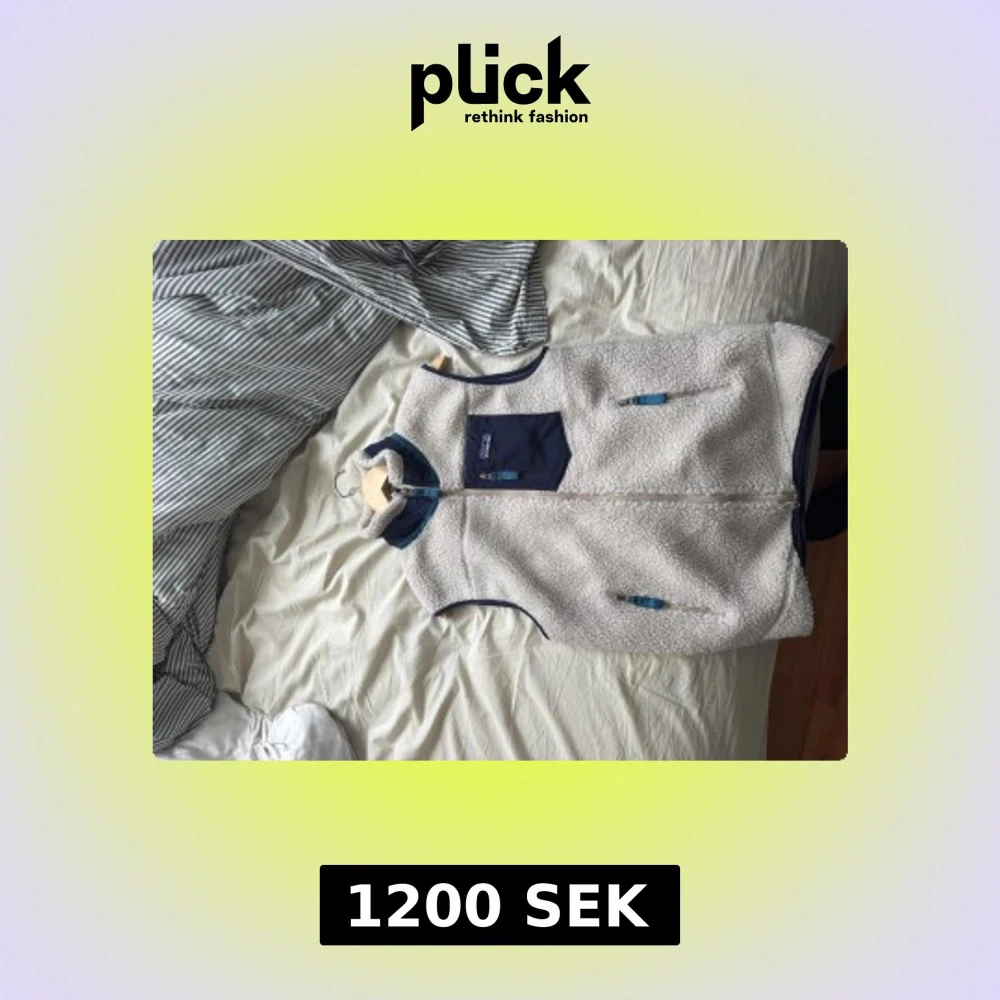 Mysig vit fleeceväst från Patagonia med marinblå detaljer och bröstficka. Västen har två sidofickor med dragkedja och hög krage. Perfekt för lager-på-lager och outdoor vibes.