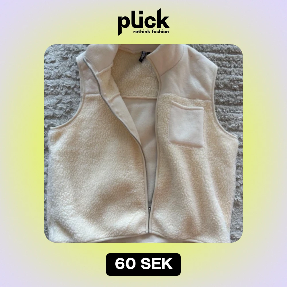Säljer en supermysig vit fleeceväst från Pieces. Den har en dragkedja framtill och en praktisk bröstficka. Perfekt för lager-på-lager under kyliga dagar. Västen är i bra skick