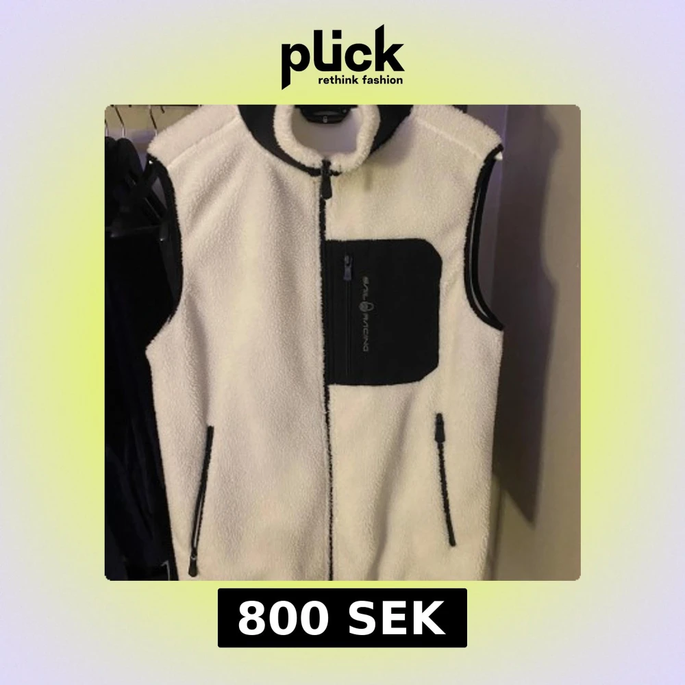 Säljer en vit fleeceväst från Sail Racing med svart dragkedja och bröstficka. Västen har en hög krage och är perfekt för kyliga dagar. Den har en stilren design med kontrasterande detaljer. Har du frågor eller funderingar hör av dig! (Kan mötas upp) mvh Oldmoneyclooset!
