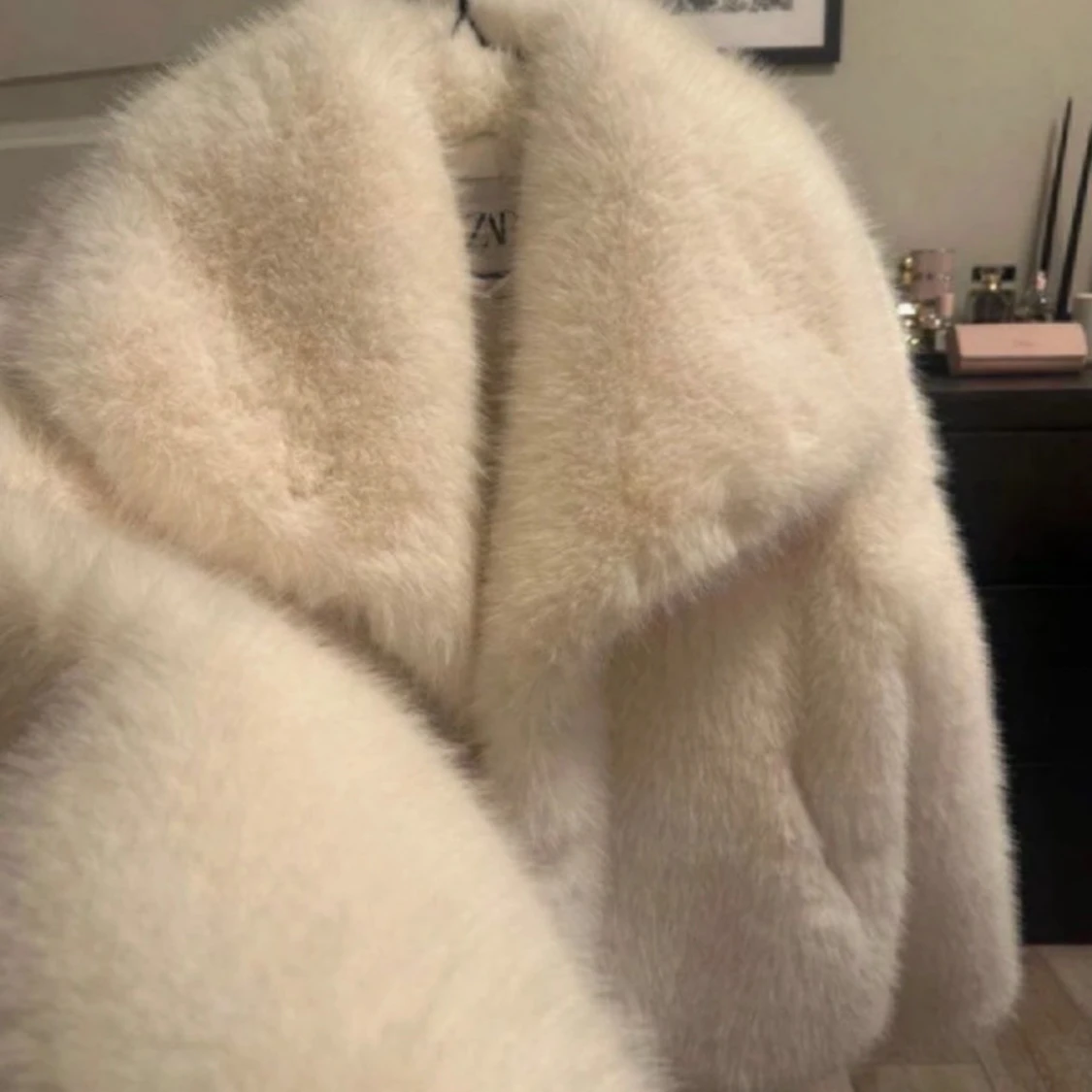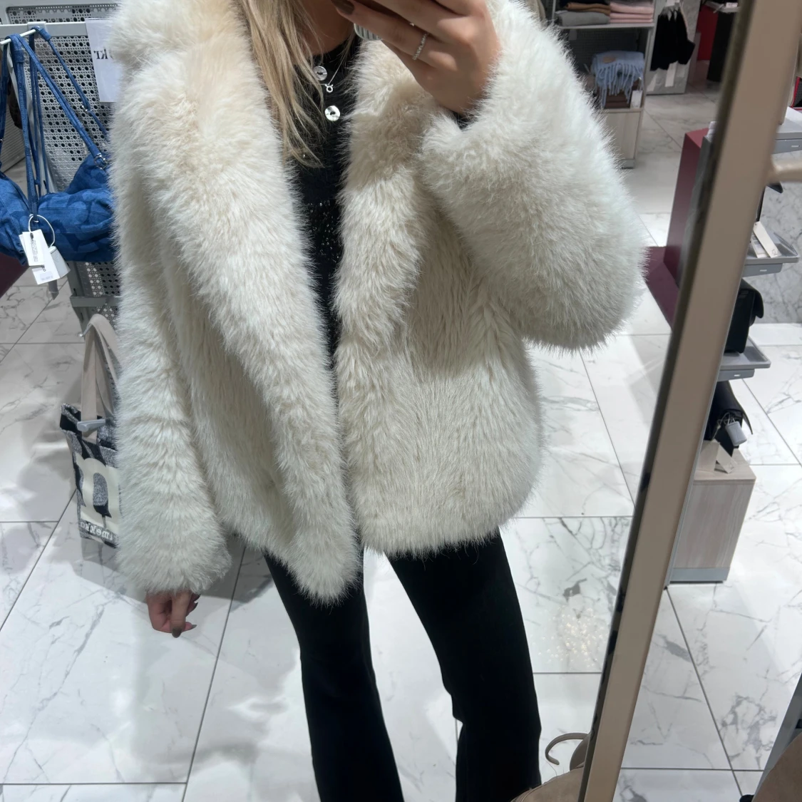 Supermysig vit pälsjacka från ZARA med bred krage och långärmad modell. Jackan har en oversized passform och är tillverkad i syntetiskt pälsmaterial som ger en lyxig och trendig vibe. Perfekt för dig som vill ha en statement-jacka med extra fluff.