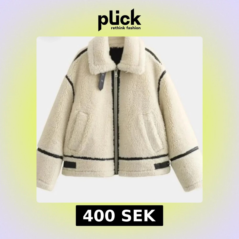 Beige teddyjacka med svarta detaljer