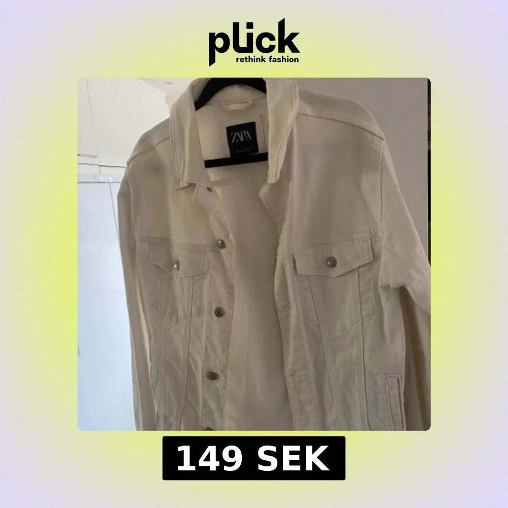 Säljer en stilren vit jeansjacka från Zara. Klassisk modell med bröstfickor med lock och knappar framtill. Perfekt att slänga över en t-shirt eller hoodie för en fräsch look.