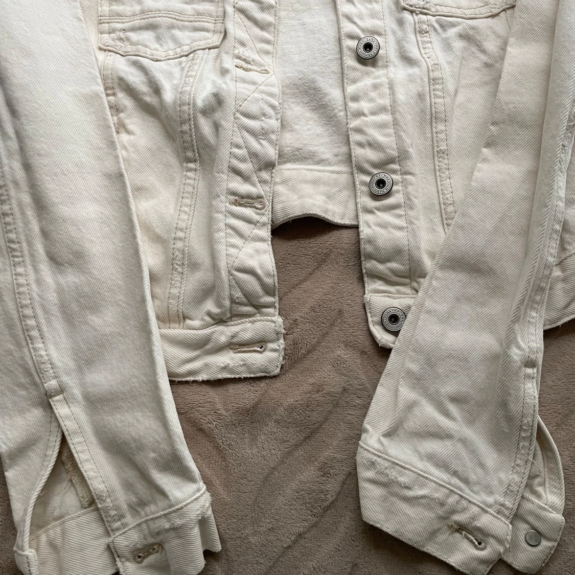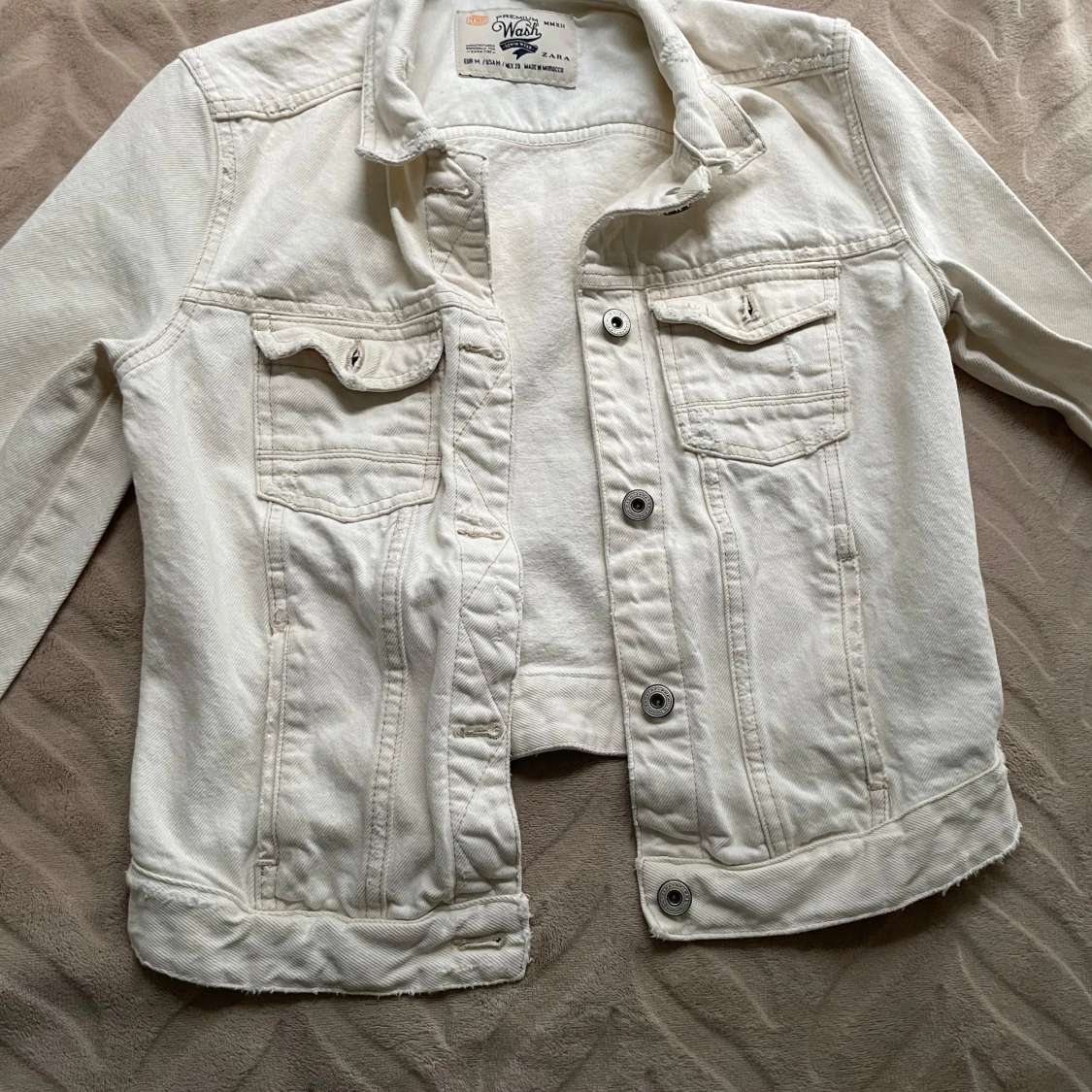 säljer denna snygga jeansjackan från zara då den inte kommer till användning. det är m men jag skulle säga att den sitter som en s💕