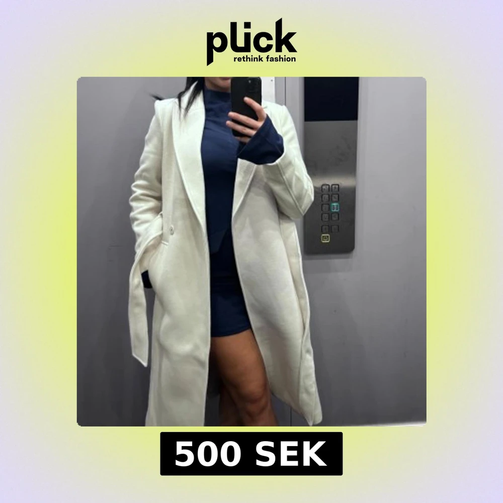 Säljer en stilren vit kappa med klassisk design. Den har långa ärmar och en elegant krage. Perfekt för att hålla sig varm och snygg under kyligare dagar. Passar bra till både vardag och mer uppklädda tillfällen.