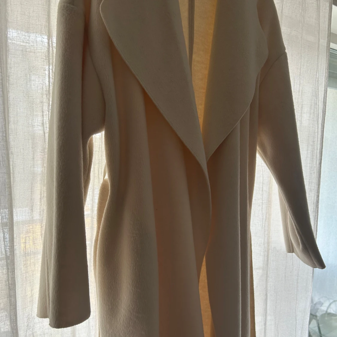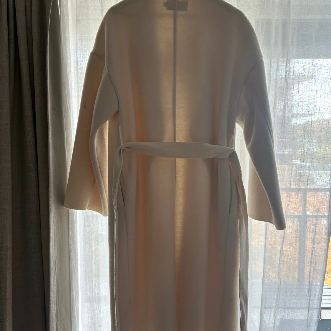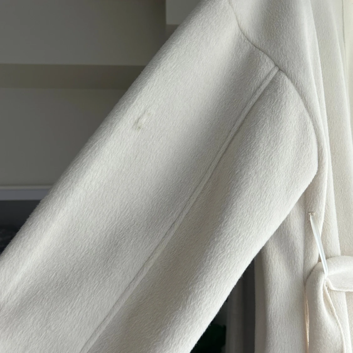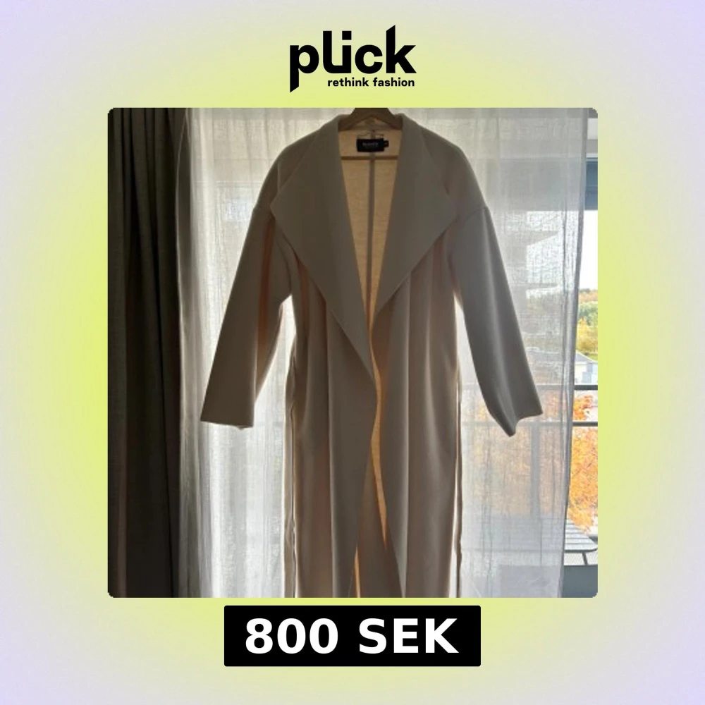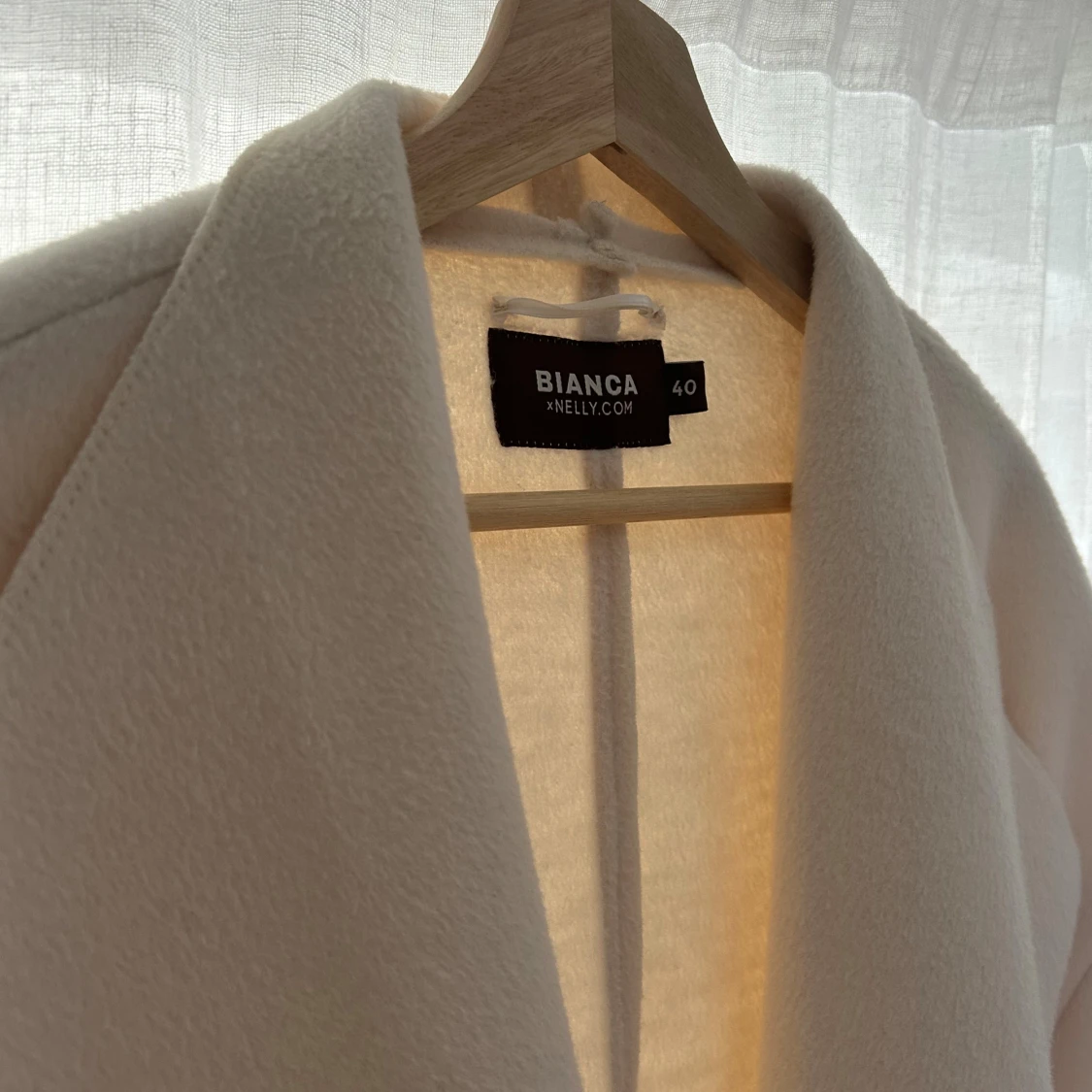 Benvit kappa från Bianca Ingrossos slutsålda kollektion med Nelly.com från 2021. Strl 40 (normal). Använd endast ett fåtal gånger så väldigt fin skick, en liten skavank på baksidan av ena ärmen (syns på sista bilden). Säljer pga att den ej kommer till användning.