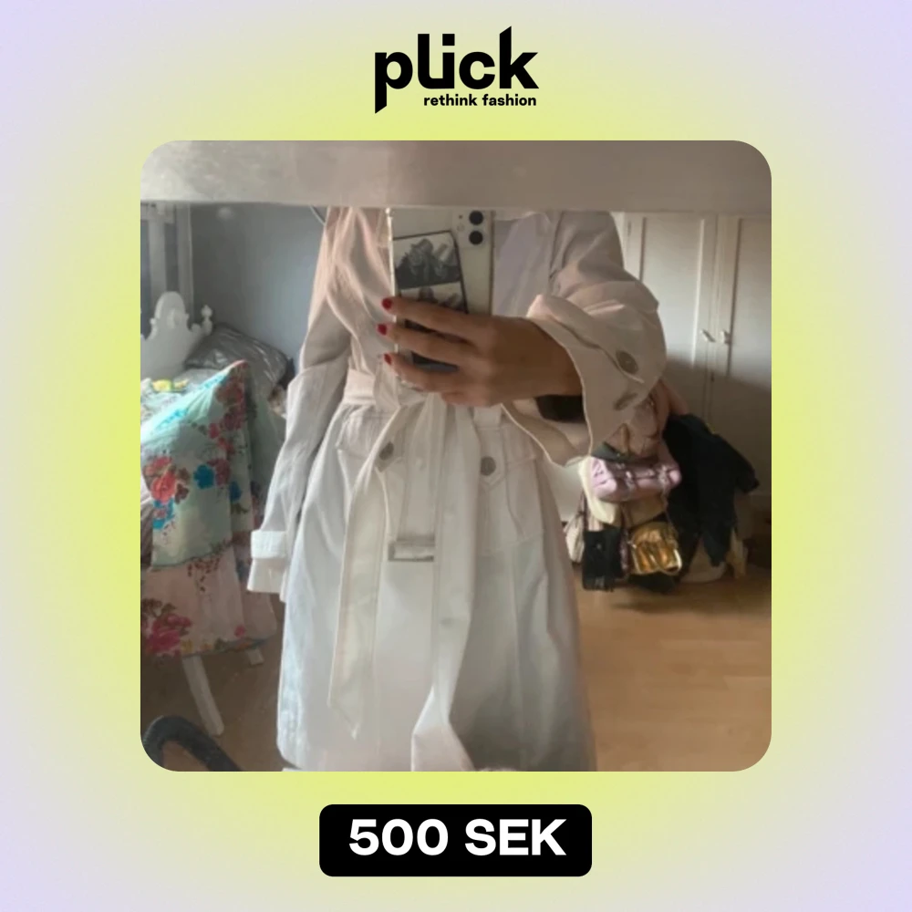 Vit vår trench-coat, helt i nyskick. Snygga detaljer perfekt för våren. Står stri 44 i, men snygg oversized och sitter bra pả mig som brukar ha 36. Säljer pga att jag har en nästan exakt likadan Nypris: 1000 kr