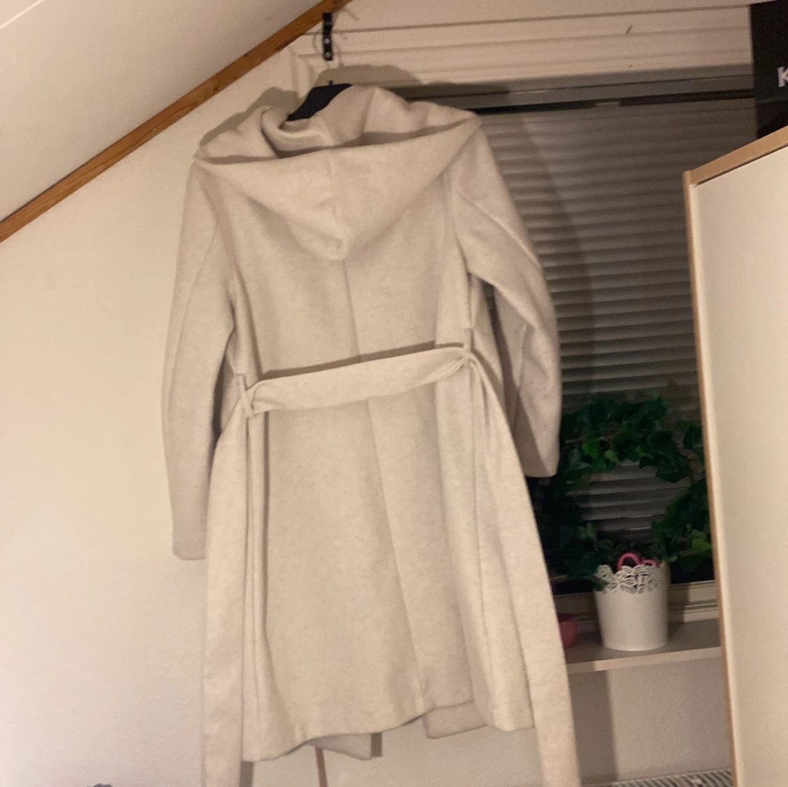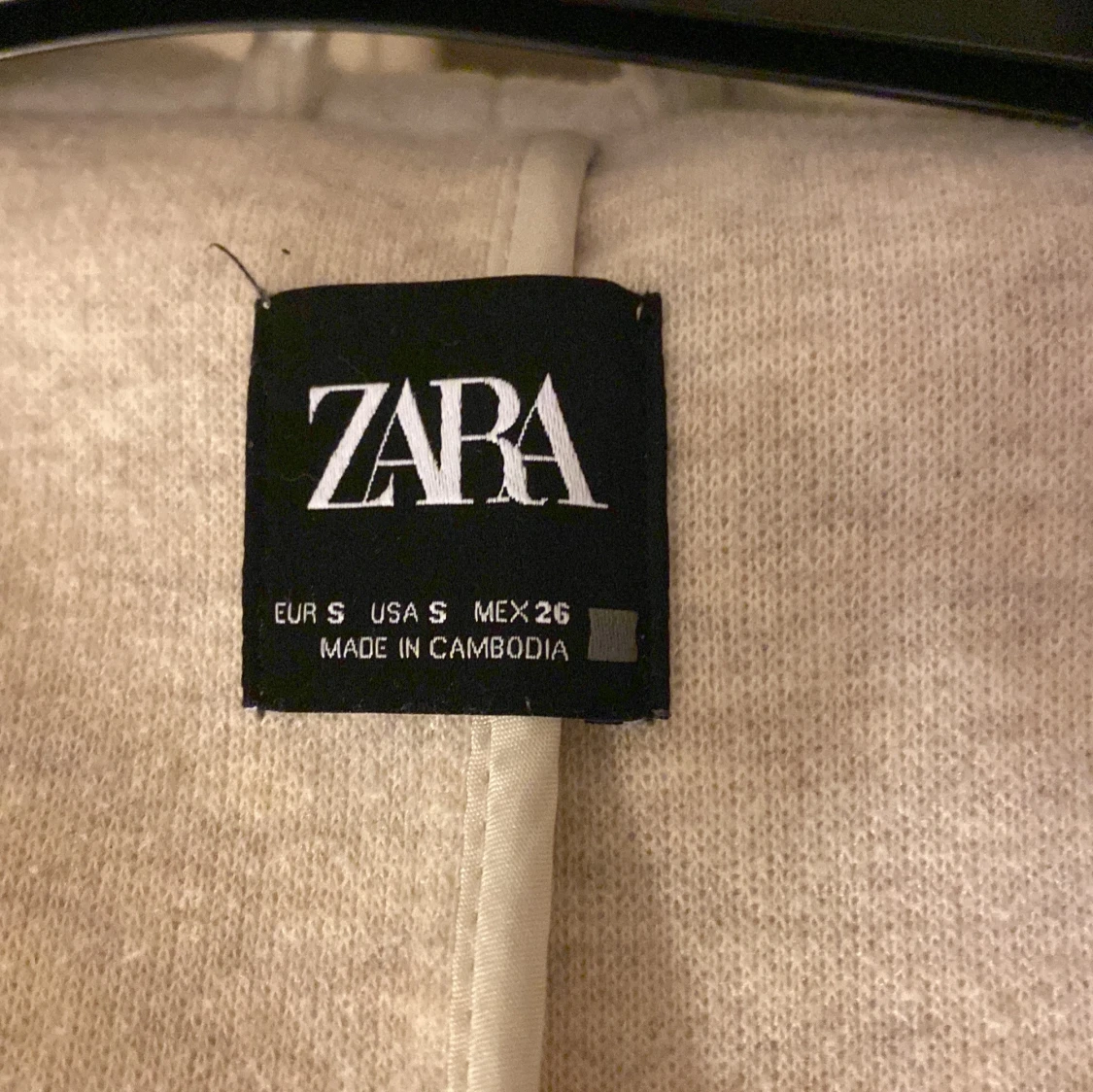 Stilren beige kappa från Zara med luva och bälte i midjan. Kappan har lång ärm, knäppning framtill och en mjuk, lite ullig känsla. Perfekt för dig som vill ha en clean look med snygg passform och extra cozy känsla.