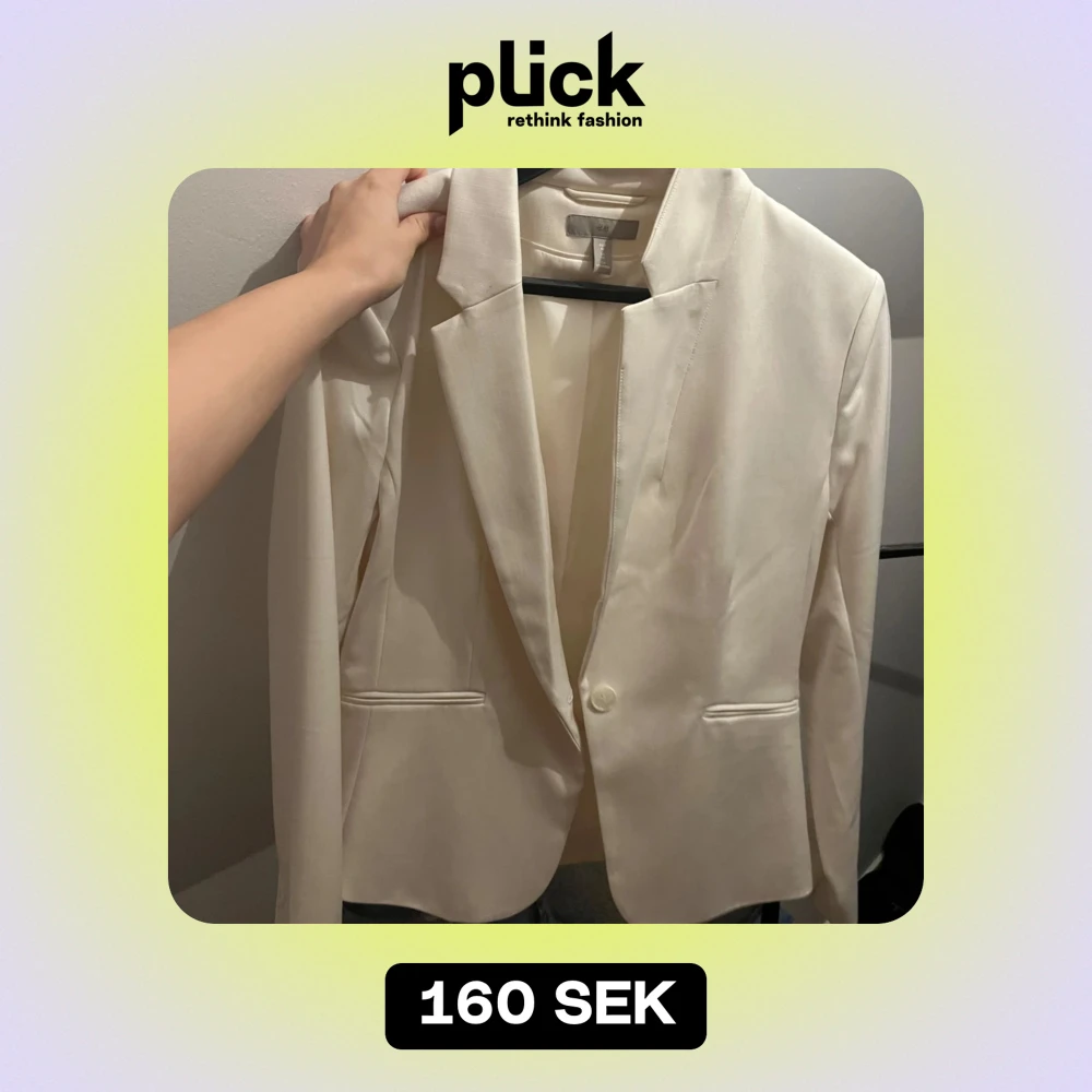Säljer en stilren vit kavaj i mycket bra skick. Den har en klassisk design med en knapp framtill och två fickor. Perfekt för både formella och semi-formella tillfällen. Passar bra till både byxor och kjol. Ett måste i garderoben för en elegant look!