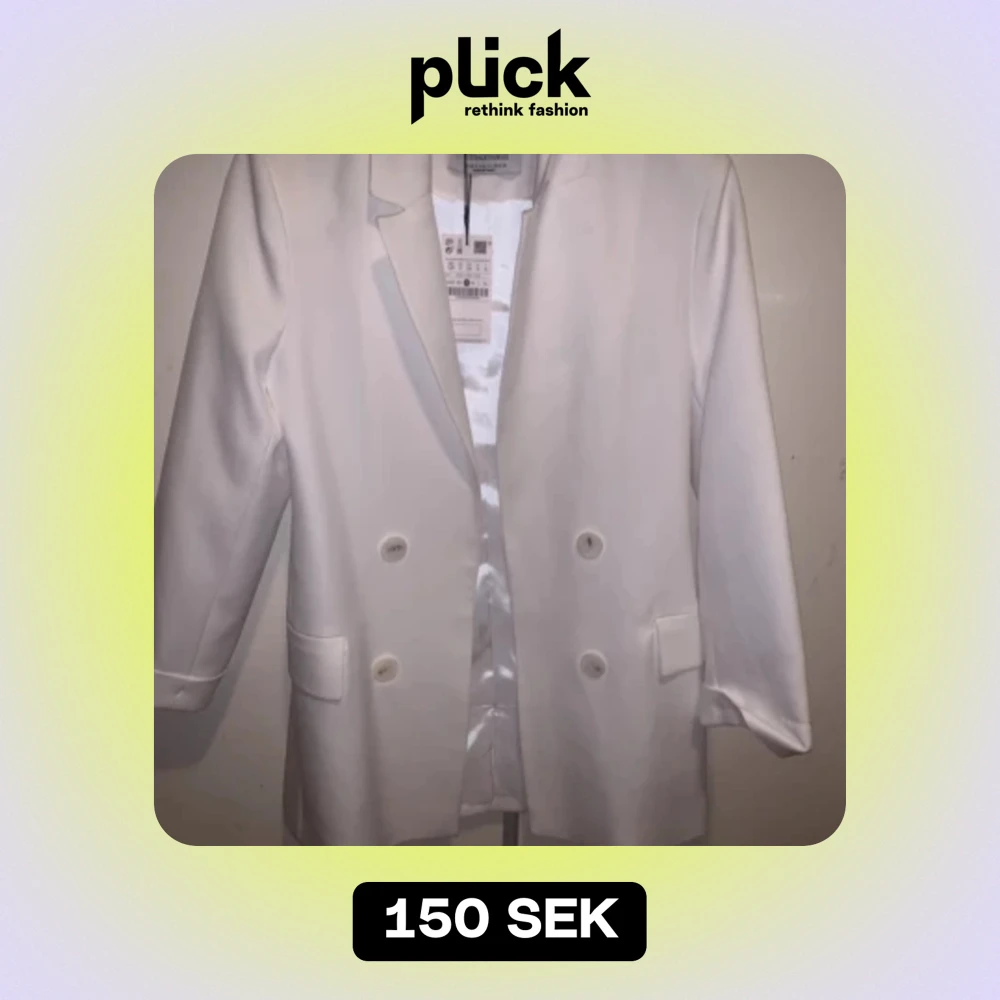 Snygg vit kavaj från KappAhl i nyskick. Den har en klassisk design med dubbelknäppning och långa ärmar. Perfekt för både vår och sommar, och funkar lika bra till fest som till vardags. Storlek dam 38.