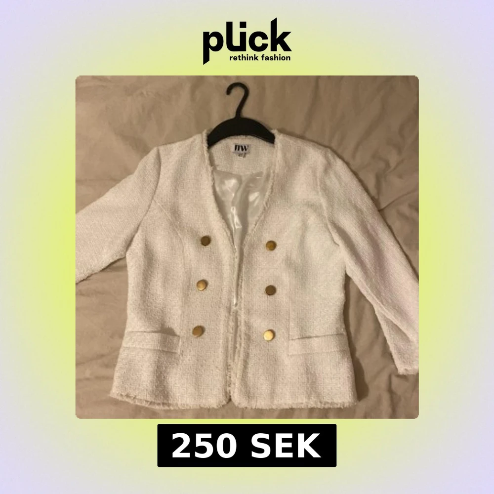 En lite kortare vit kavaj från Make Way med guldknappar och en stilren design. Kavajen har en texturerad yta och två fickor framtill.