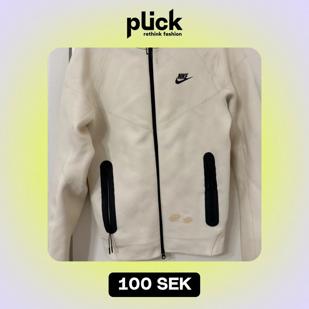 Säljer en vit Nike-kofta med svarta detaljer och dragkedja. Den har en huva och två fickor framtill. Några små fläckar finns på framsidan, som ej går bort i vanlig tvätt, skulle dock säga att man kan testa använda vanish eller klorin, vilket jag inte testat göra då jag köpte en ny.❤️Använt fåtal gånger och köpt från Zalando