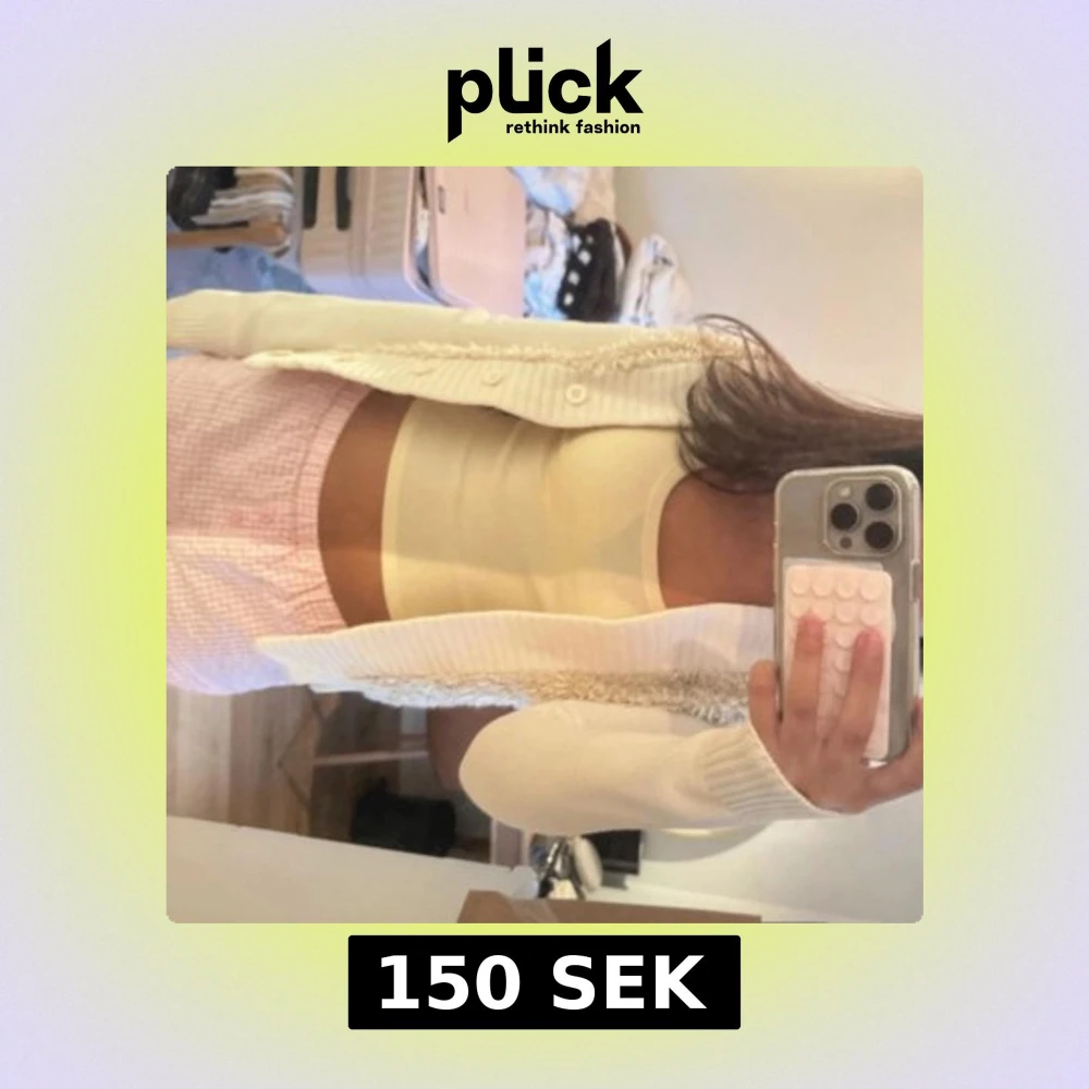 Säljer en lång, vit pälsväst med stickade partier och mysiga pälsdetaljer framtill. Västen har knappar längs hela framsidan och en ribbad kant. Perfekt för lager-på-lager och ger en chill vibe till din outfit.