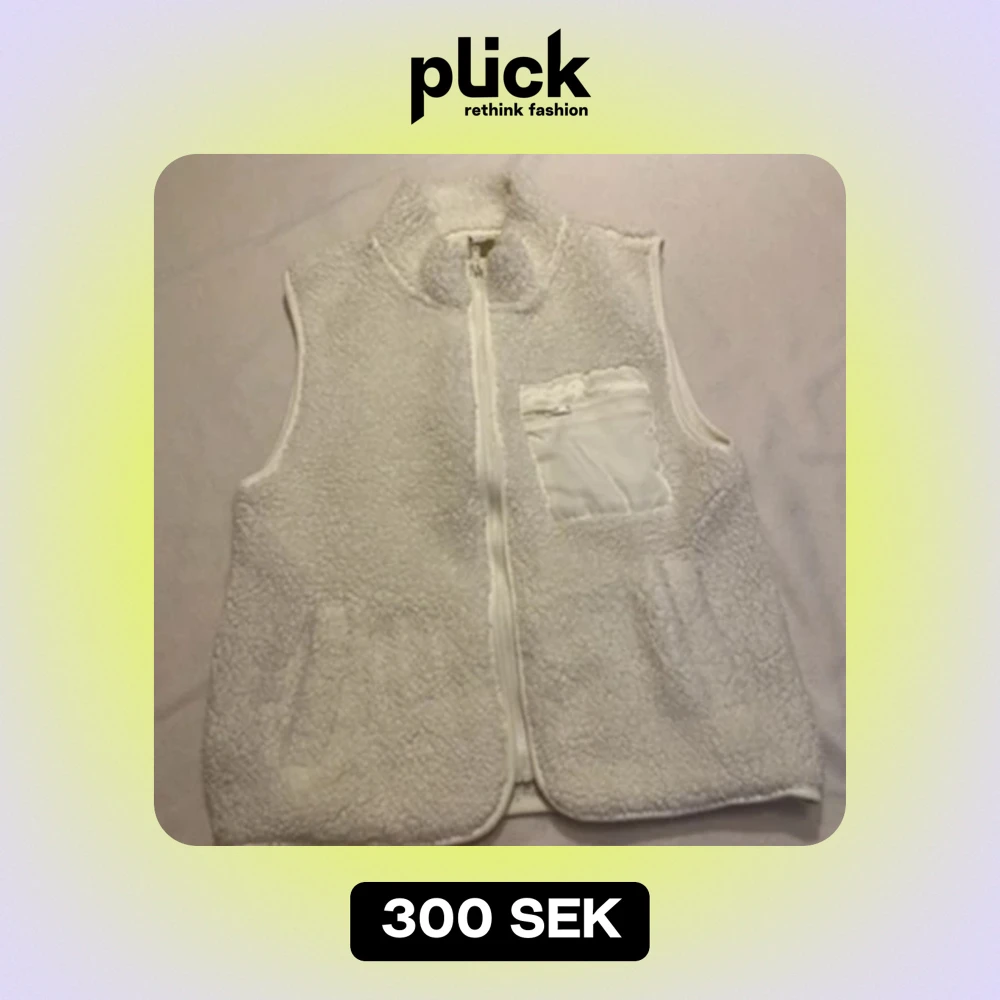 Vit, lurvig flisväst och en ficka med dragkedja. Storlek 146/152 från Lindex.