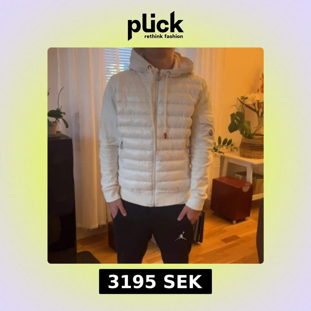 Snygg vit cardigan från Moncler med huva och dragkedja framtill. Jackan har quiltad framsida, släta ärmar och två fickor med dragkedja. Klassisk Moncler-logga på ärmen och snörning i huvan. Perfekt för dig som vill ha en clean och stilren look. Kan sänka pris vid snabb affär fraktar samma dag som köpt. Storlek: S passar 165-180