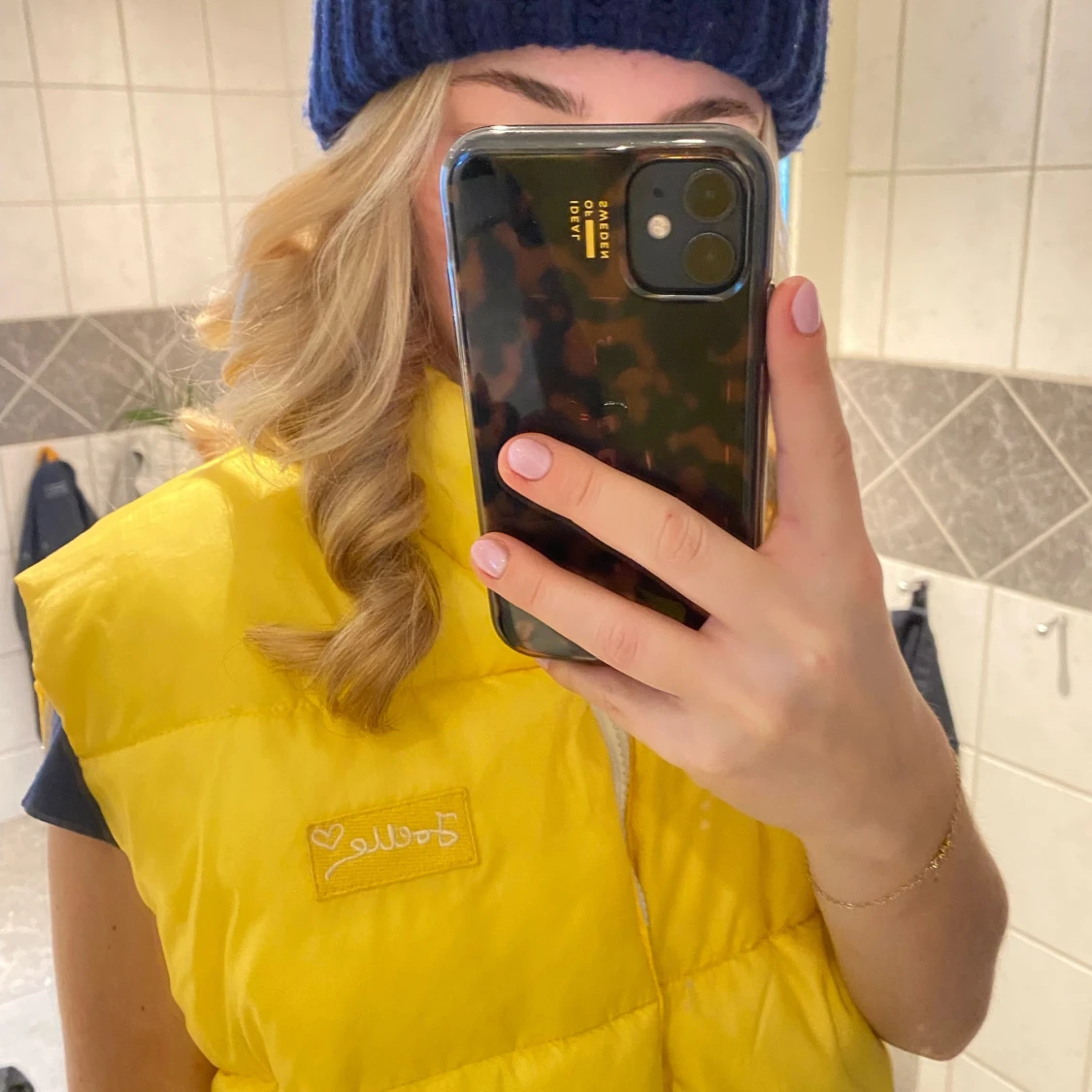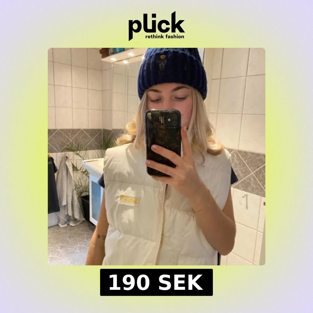 Säljer en snygg dunvästi både vit och gul färg. Den är vändbar. Västen har en dragkedja framtill och en broderad logga på bröstet. Perfekt till afterskin.