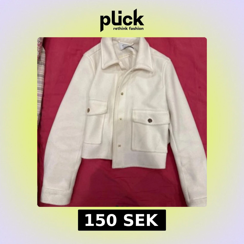 Snygg vit overshirt från Stradivarius med stora fickor framtill och guldiga knappar. Jackan har klassisk krage, raka linjer och är tillverkad i ett mjukt material som känns lite ulligt. Perfekt för lager-på-lager och enkel att styla till allt.