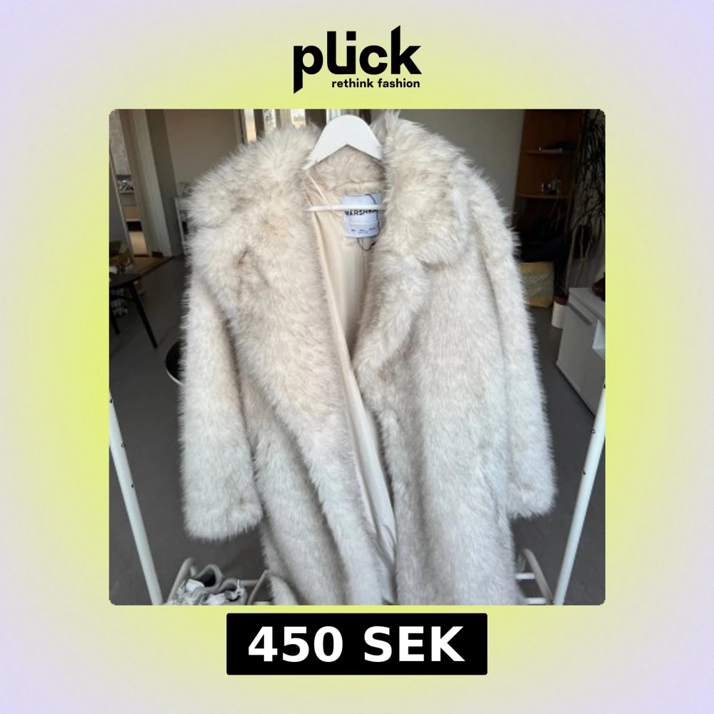 Säljer en fluffig och stilren vit pälsjacka från Bershka. Jackan har en klassisk design med långa ärmar och en mjuk krage. Perfekt för att hålla sig varm och trendig under kyliga dagar.