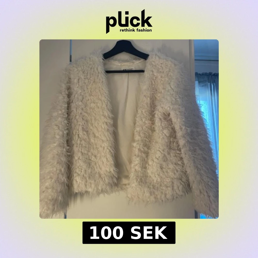 Säljer en fluffig och trendig vit pälsjacka från H&M.