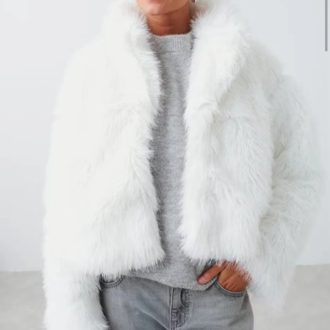 Jättefin vit pälsjacka (inte äkta päls) från Gina Tricot. Passar perfekt nu inför höst och vintern. Den är använd få gånger och i väldigt bra skick.