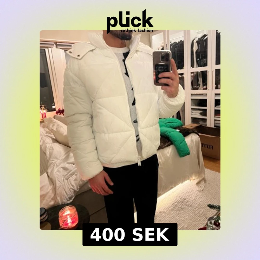 Säljer en snygg vit pufferjacka från boohooMAN i storlek M. Jackan har quiltad design, hög krage och dragkedja framtill. Inga defekter. Priset går att diskutera.