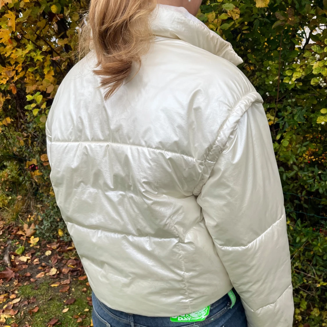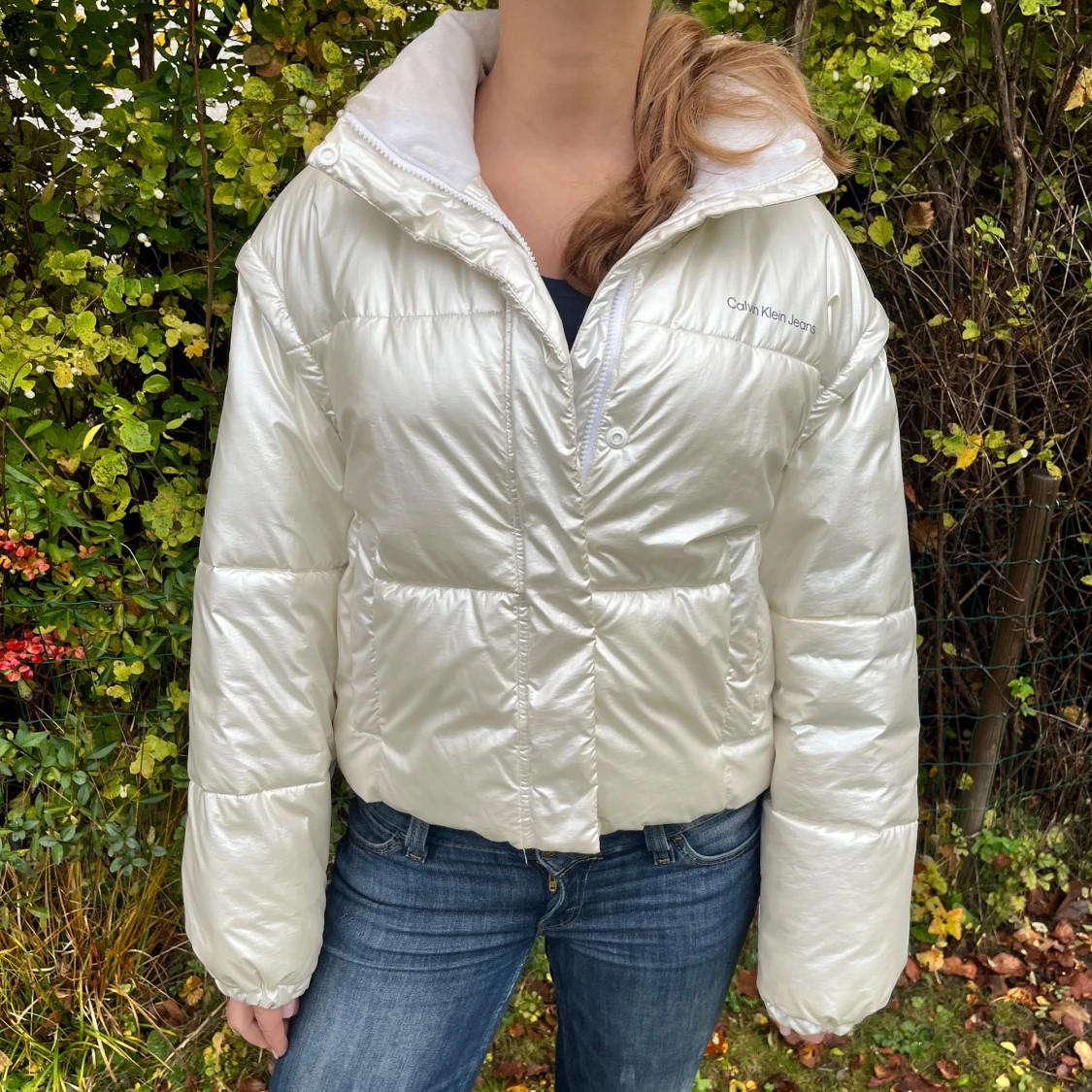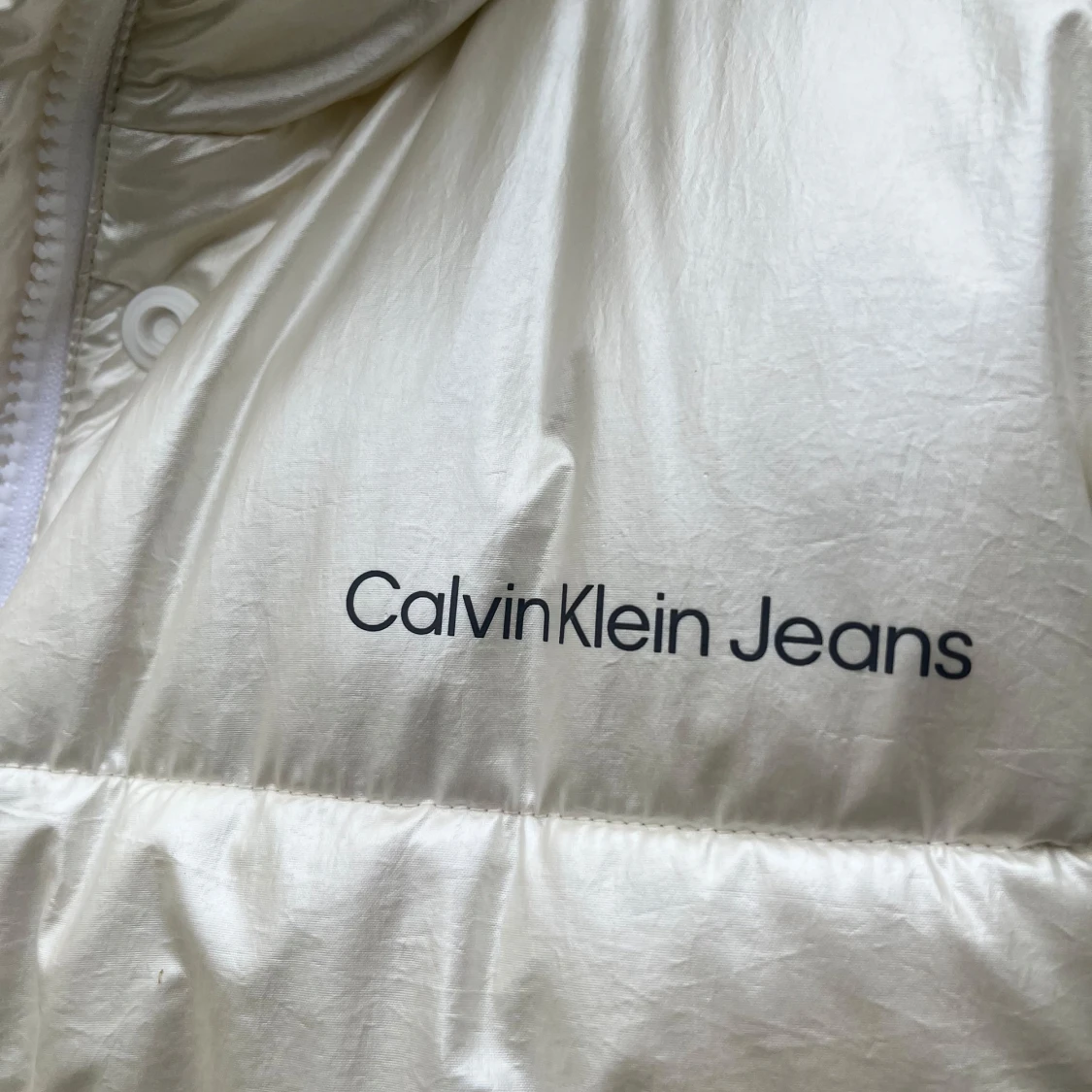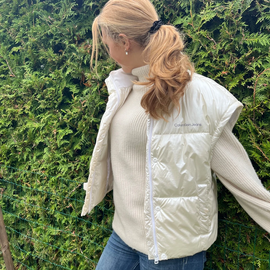 Snygg vit pufferjacka från Calvin Klein Jeans med avtagbara ärmar så den kan bäras som väst. Jackan har hög krage, dragkedja och tryckknappar framtill samt diskret logga på bröstet. Perfekt för vintern, snygg och trendig!