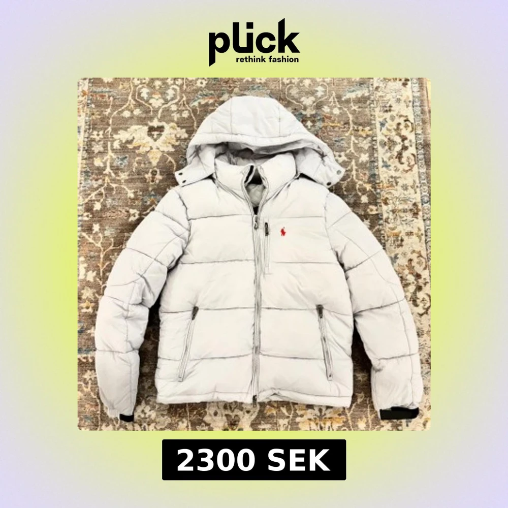 Säljer en fräsch vit pufferjacka från Polo Ralph Lauren med huva och dragkedja. Jackan har två sidofickor med dragkedja och en liten röd Polo-logga på bröstet. Perfekt för kalla dagar och har en modern, clean look.