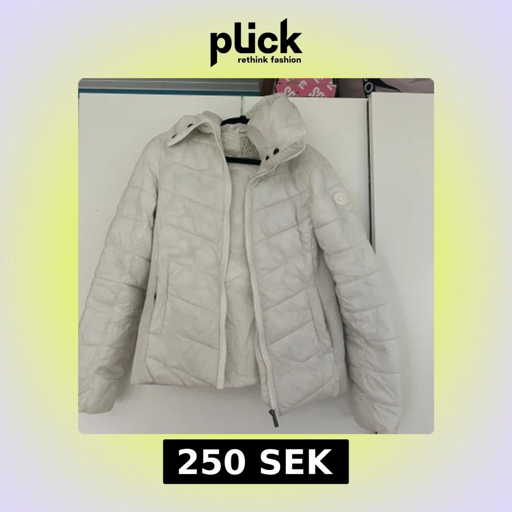 Säljer en snygg vit pufferjacka från stadium. Jackan har en dragkedja framtill och en hög krage för extra värme. Det är storlek S/36