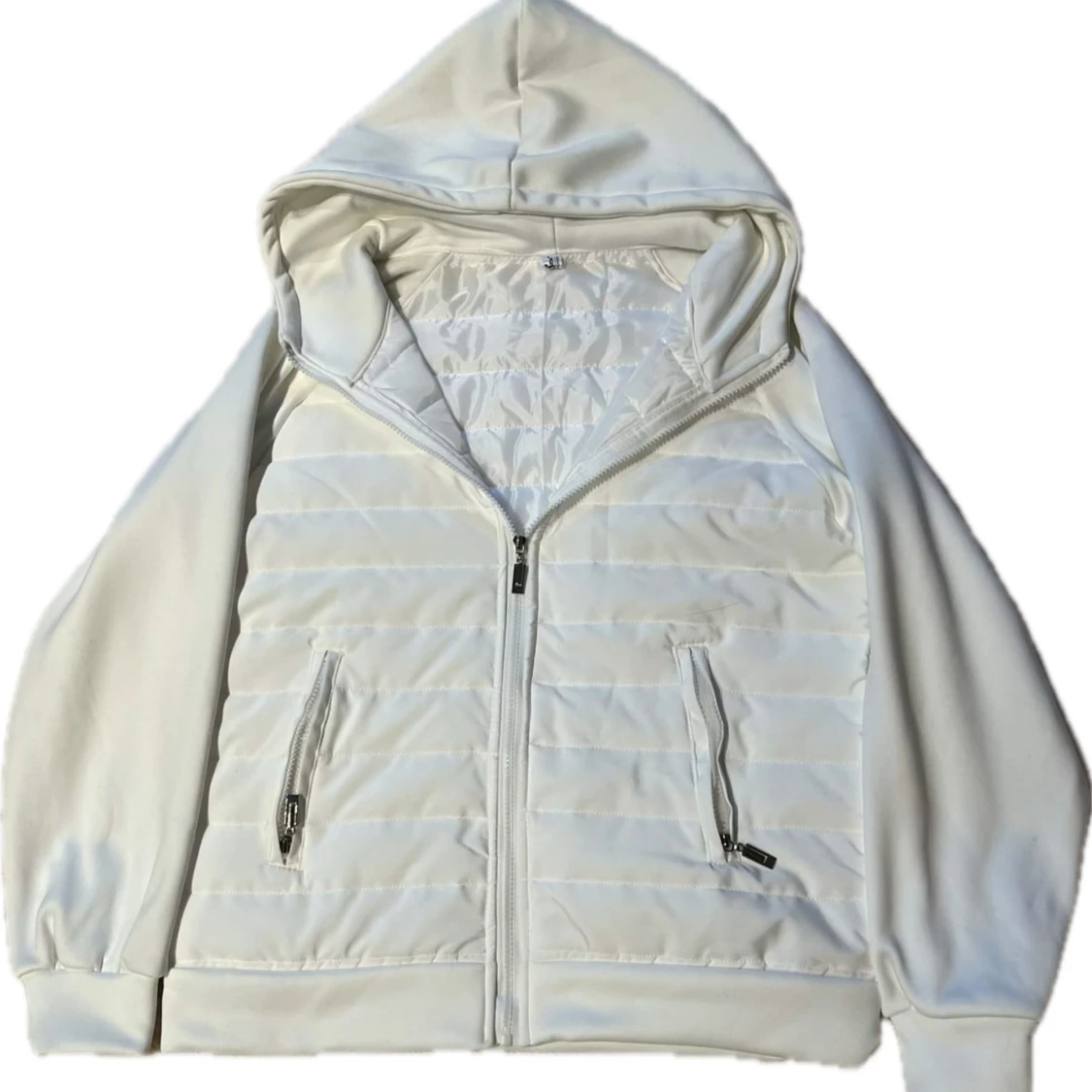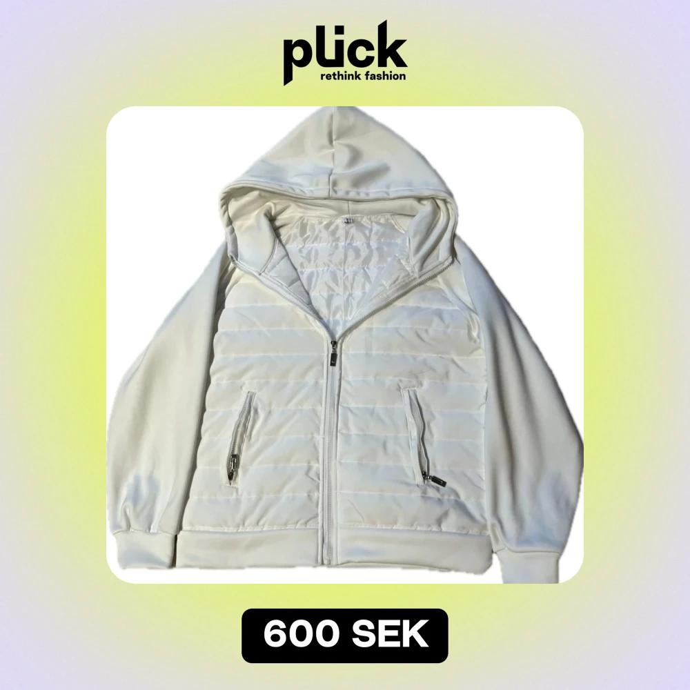 Säljer en superskön och stilren vit cardigan med quiltad framsida. Den har en dragkedja och två praktiska fickor med dragkedjor. Perfekt för kyliga dagar och passar till nästan allt. Den är i nyskick! Även en extremt eftertraktad jacka!