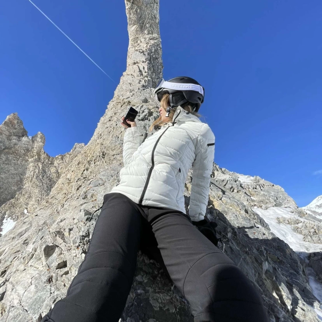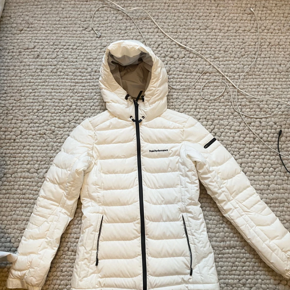 Säljer en vit skidjacka från Peak Performance storlek S i mycket bra skick. Perfekt för vintern och skidåkning! Bara använd den i totalt 2 veckor. Ända tecken på användning är en jätteliten sminkfäck. Köpt för 5000kr. Här av er vid om fler bilder eller frågor!
