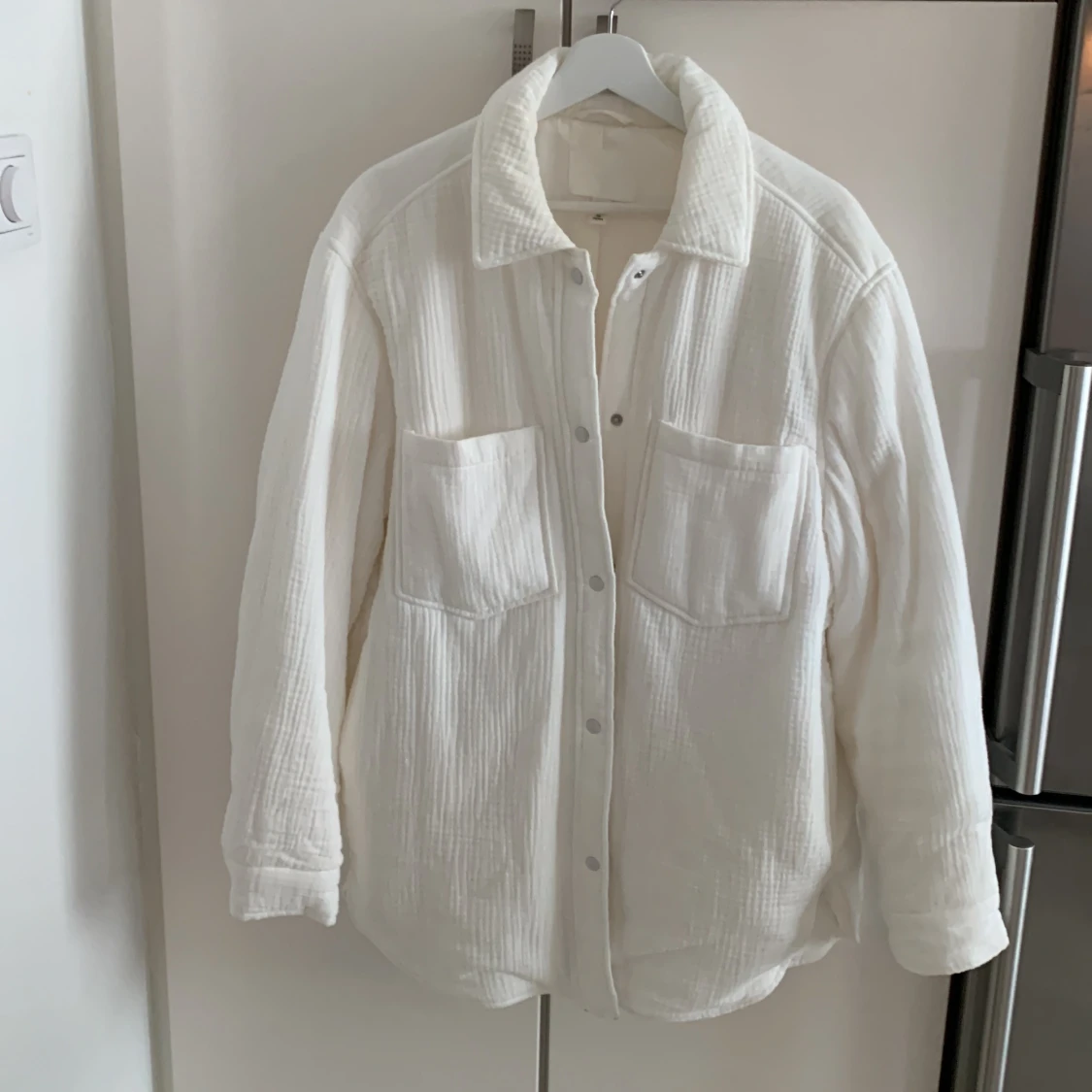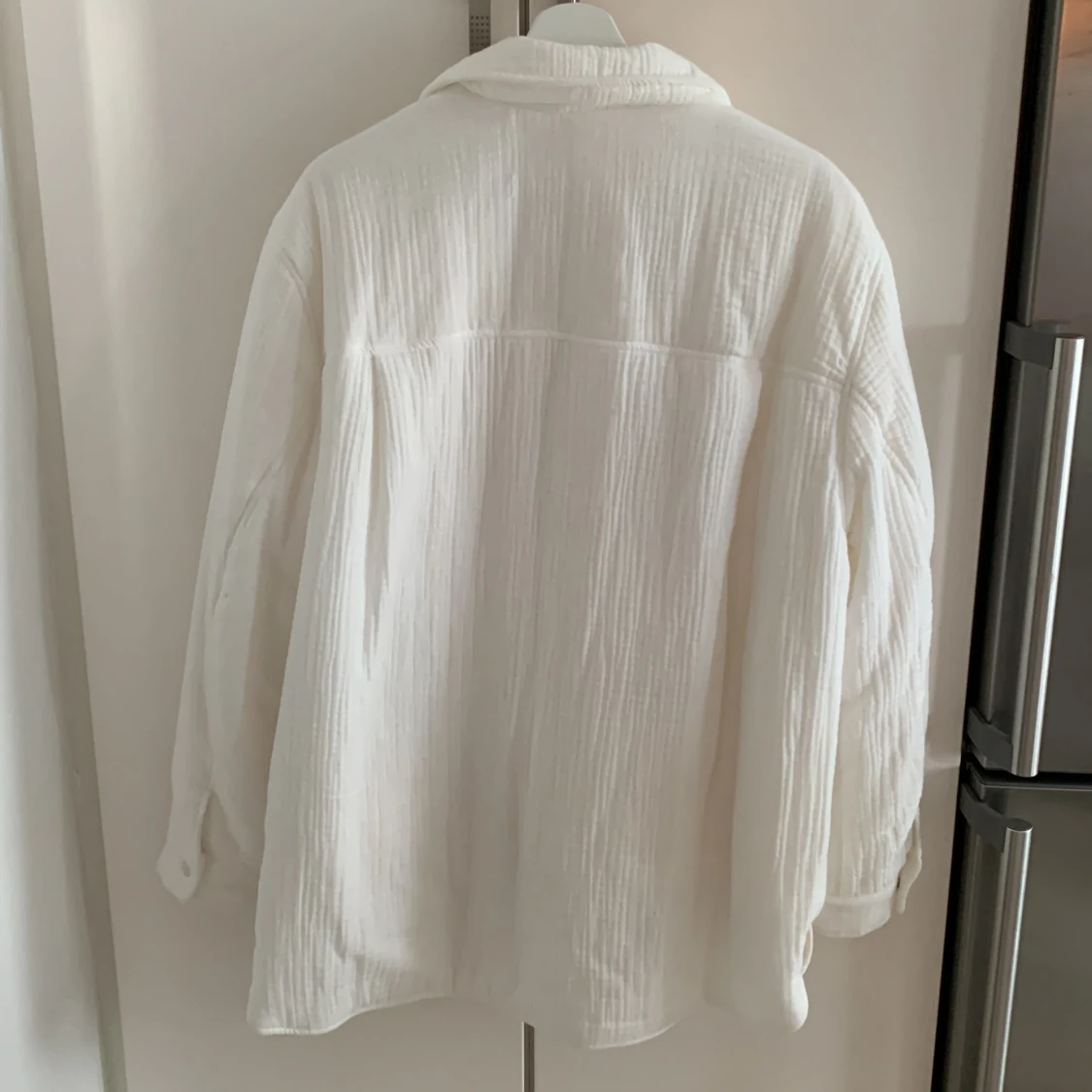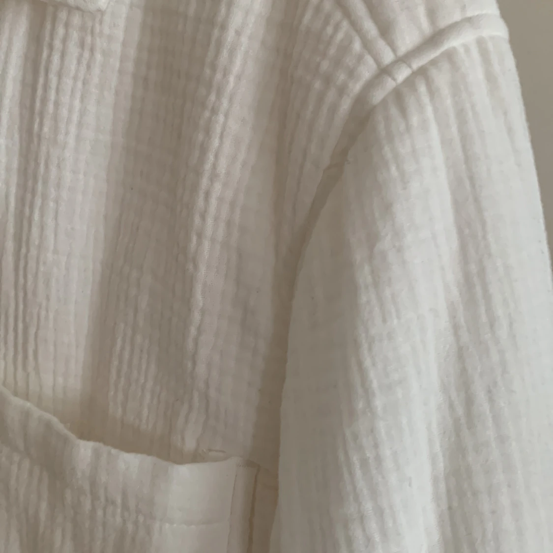 Oversizad sjortjacka i muslin tyg ”premium kollektion” perfekt för vår/höst. Använd i mycket bra skick. Stor i storlek Axelbred 42cm Längd 80 cm