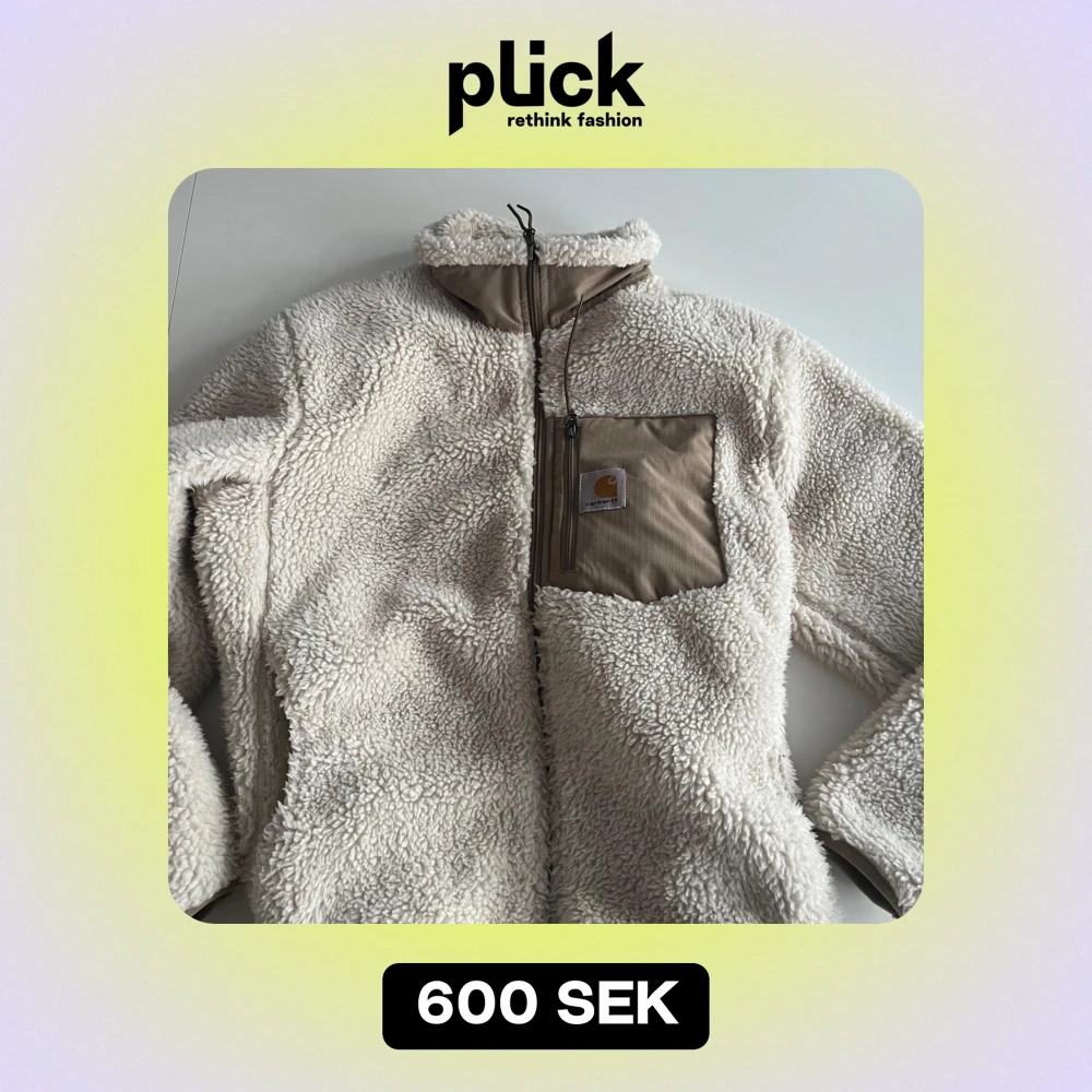 Mysig vit teddyjacka från Carhartt i mycket bra skick. Perfekt för kyliga dagar med sin fluffiga och varma design. Jackan har en praktisk dragkedja och en bröstficka med Carhartt-logga. Den är långärmad och passar perfekt för höst och vinter.