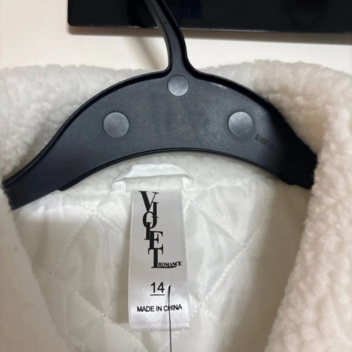 Supermjuk och fluffig vit teddyjacka från Violet Romance. Jackan har klassisk krage, två bröstfickor med lock och knappar framtill. Perfekt för dig som vill ha en mysig och trendig look med oversized känsla.