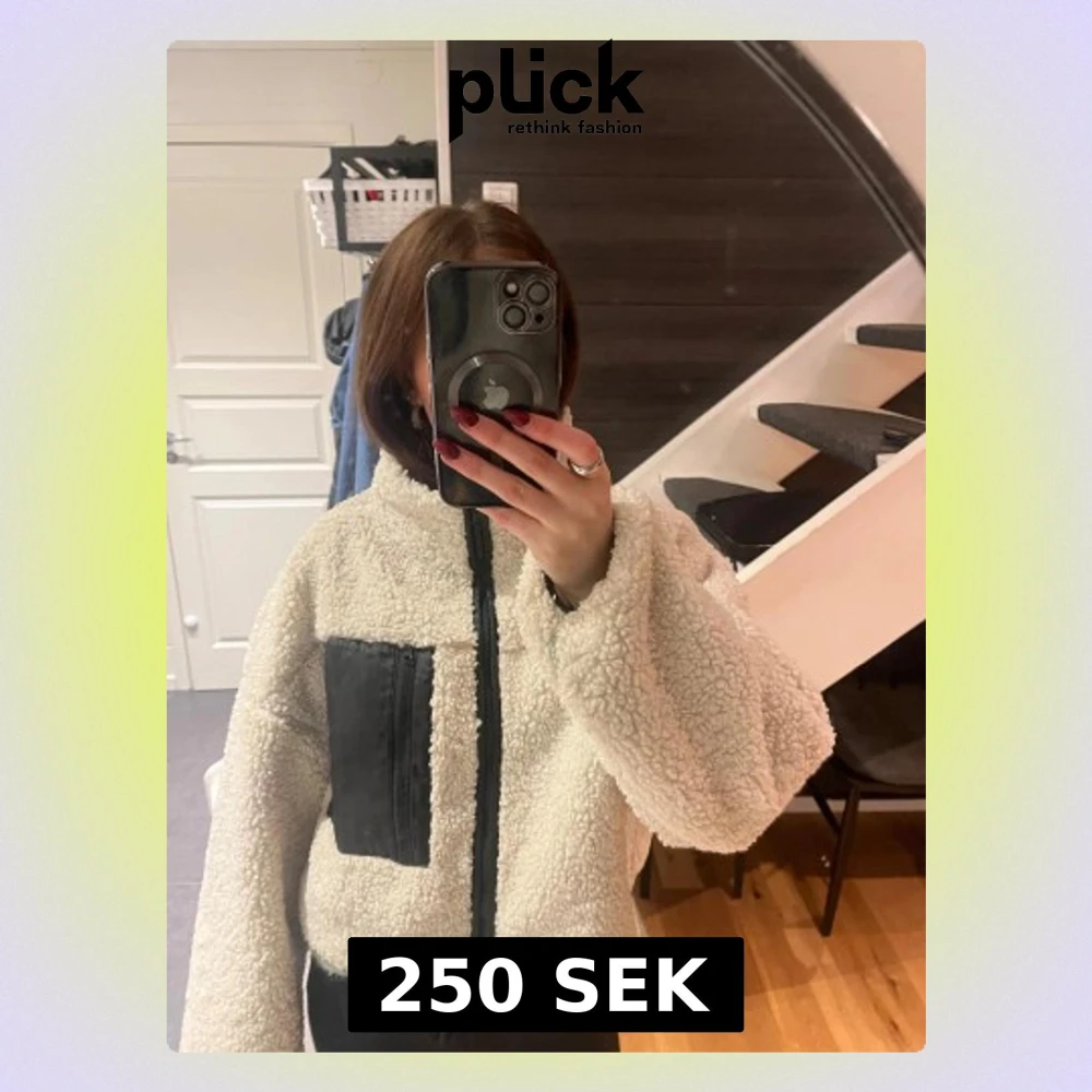 Säljer en fluffig vit teddyjacka med svart dragkedja och svart ficka på bröstet. Jackan har hög krage och är långärmad, croppad i modellen. Jackan är köpt på Gina Tricot och är välanvänd. Den är i storlek M men passar mig som normalt är S/XS