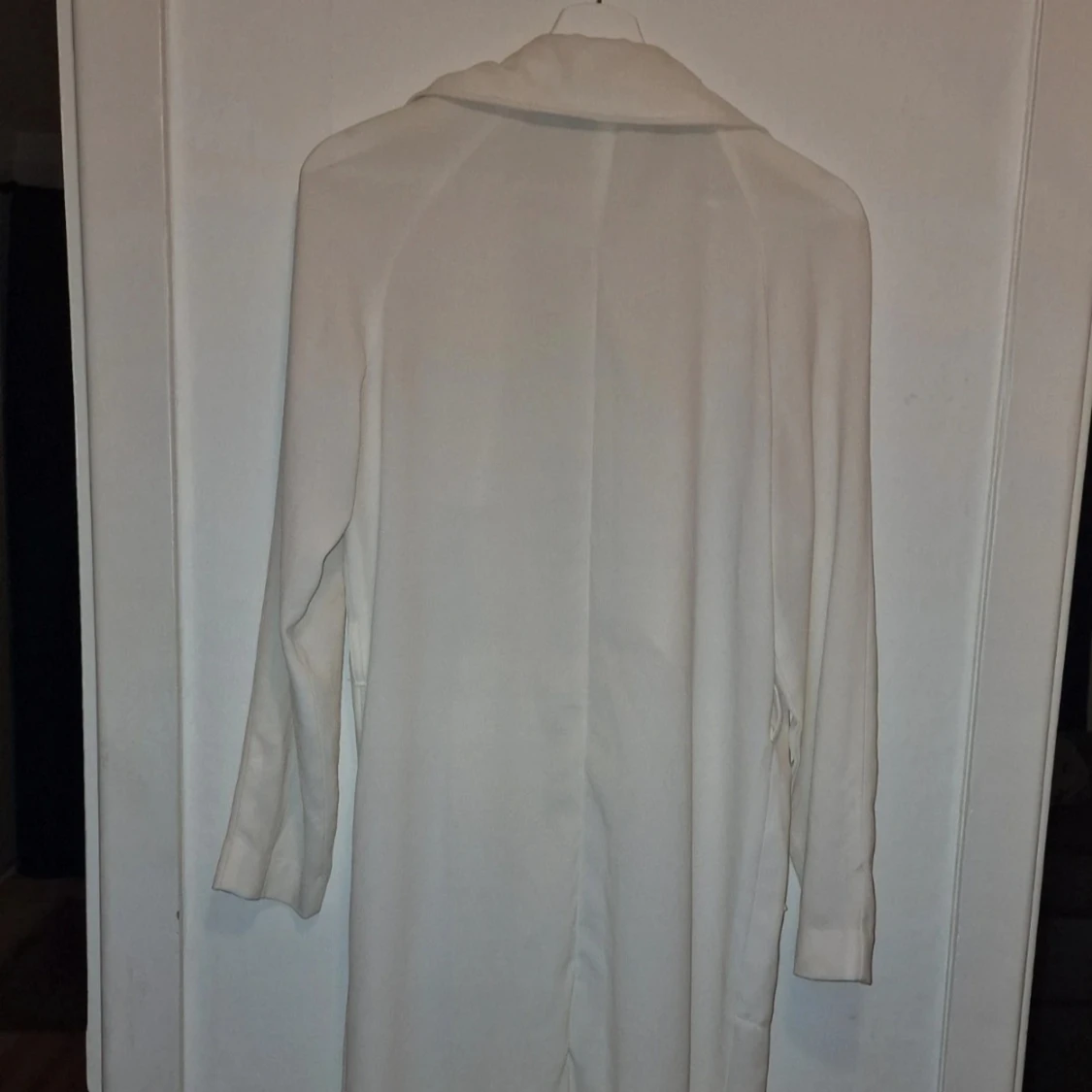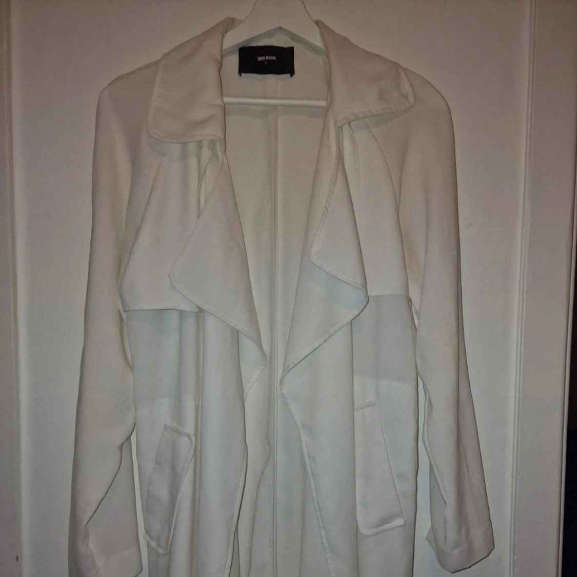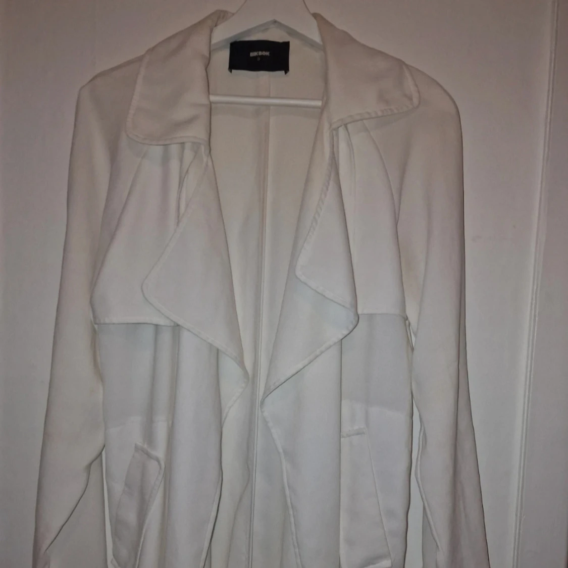 Säljer en stilren vit kappa från Bikbok i mycket bra skick. Den har en elegant design med långa ärmar och en fin krage. Perfekt för vår och höst när du vill se chic ut.🕊️