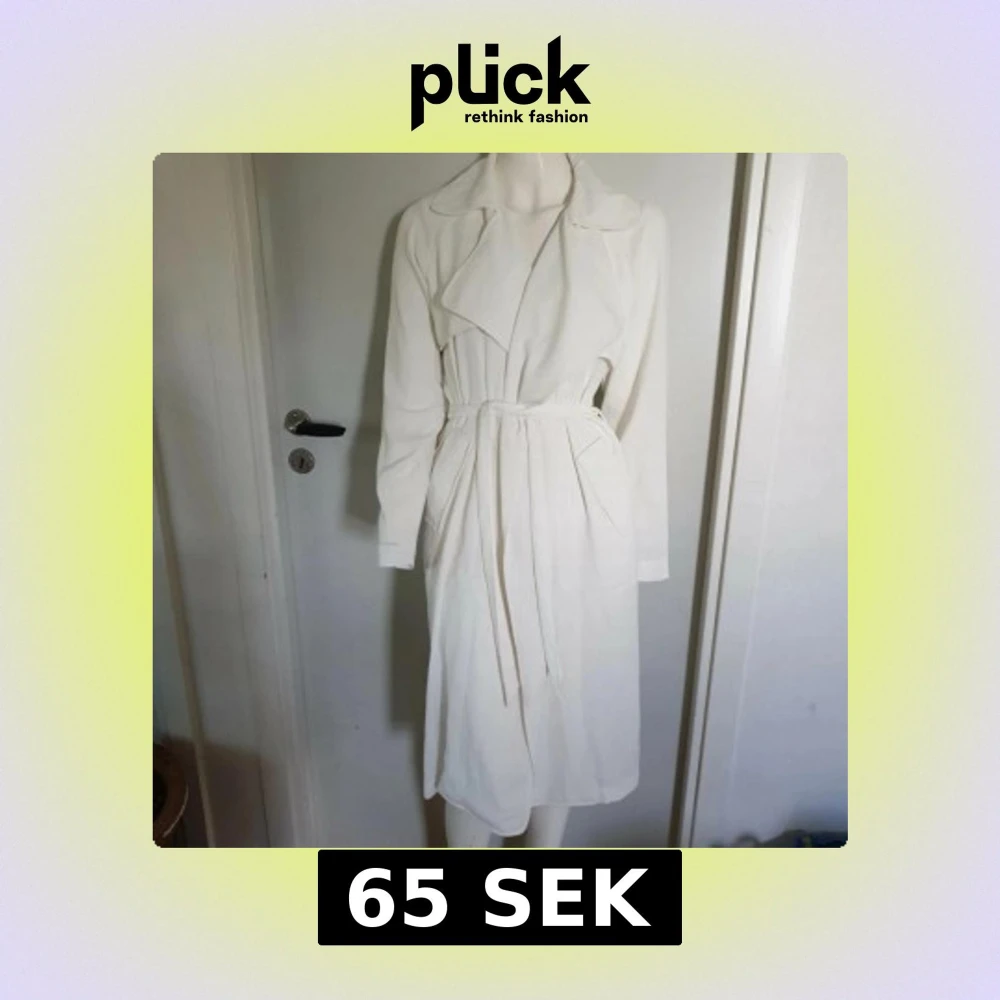 Snygg vit trenchcoat med klassisk krage och knytbälte i midjan. Jackan har långa ärmar och två framfickor, samt en stilren, rak passform som går ner till vaden. Perfekt för dig som gillar minimalistisk och clean stil.