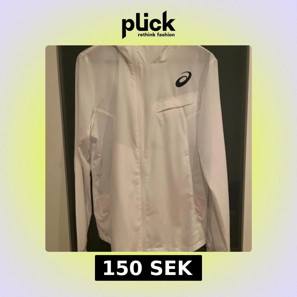 Snygg vit vindjacka från Asics med huva och hel dragkedja framtill. Jackan har en stilren design med svart Asics-logga på bröstet, praktiska fickor och långärmad passform. Perfekt för dig som gillar sportig och clean stil.