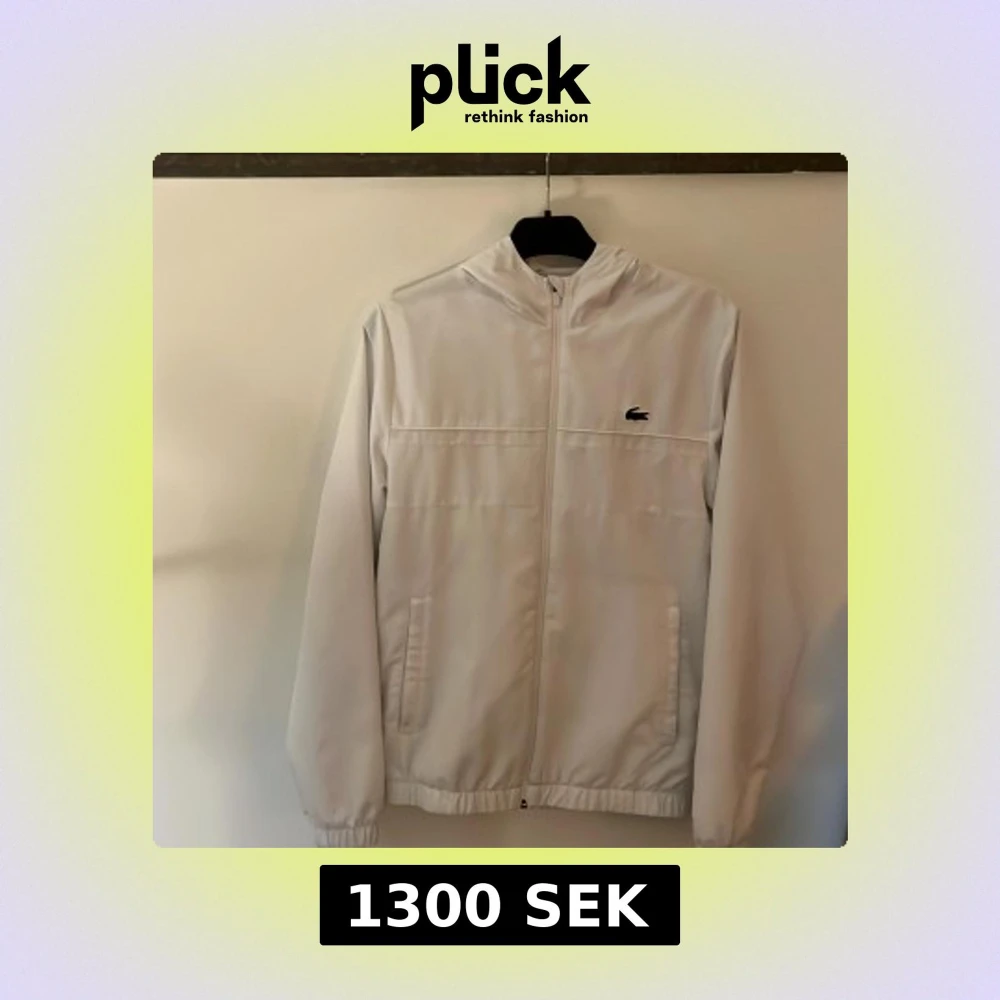Fräsch vit vindjacka från Lacoste i storlek Xs. Jag säljer nu min Lacoste jacka eftersom den inte passar mig längre då jag köpte den för 1950 i butik. Jackan ser helt ny ut och har en dragkedja hela vägen, luva och elastiska muddar. Klassisk krokodillogga på bröstet och två fickor framtill. Perfekt för dig som gillar clean och sportig stil.