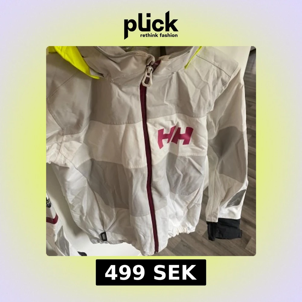 Snygg vit vindjacka från Helly Hansen med neongul huva och rosa HH-logga på bröstet. Jackan har hel dragkedja framtill, reflexdetaljer och justerbar huva. Perfekt för blåsiga dagar och outdoor-äventyr. Materialet är syntet och jackan har långa ärmar.