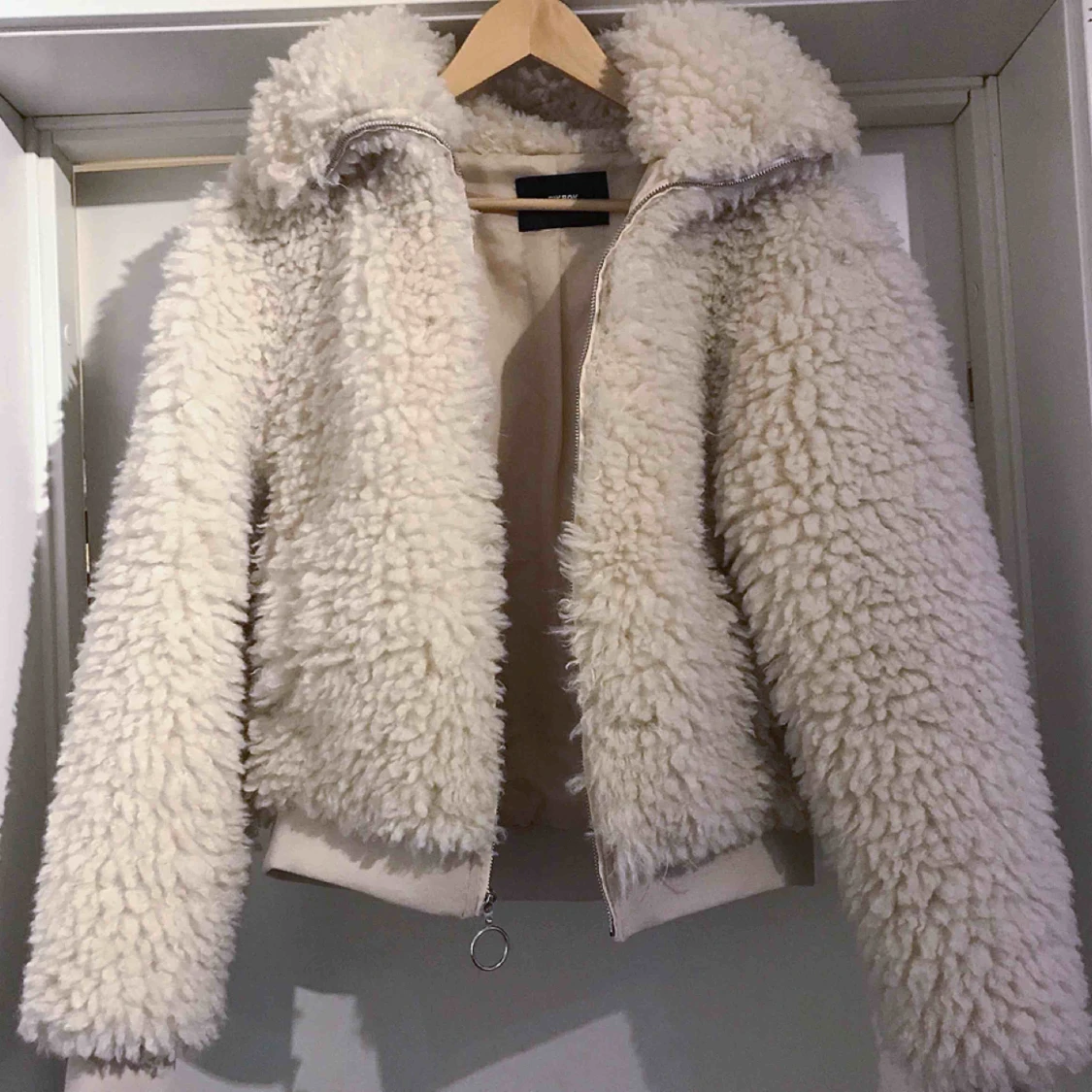 Jättefin mysig krämvit jacka från BikBok. Köpt för 699kr. Passar även mig med storlek S.