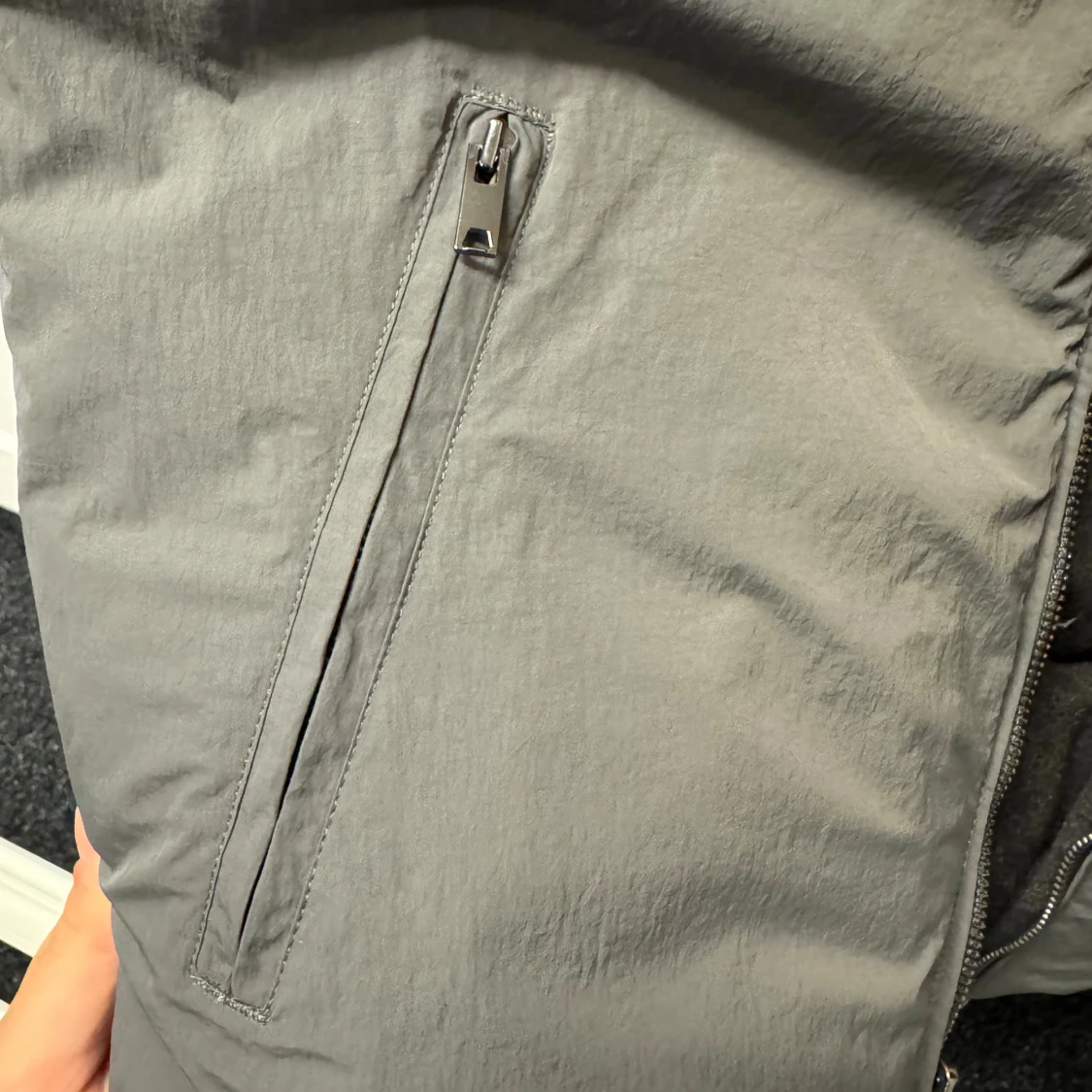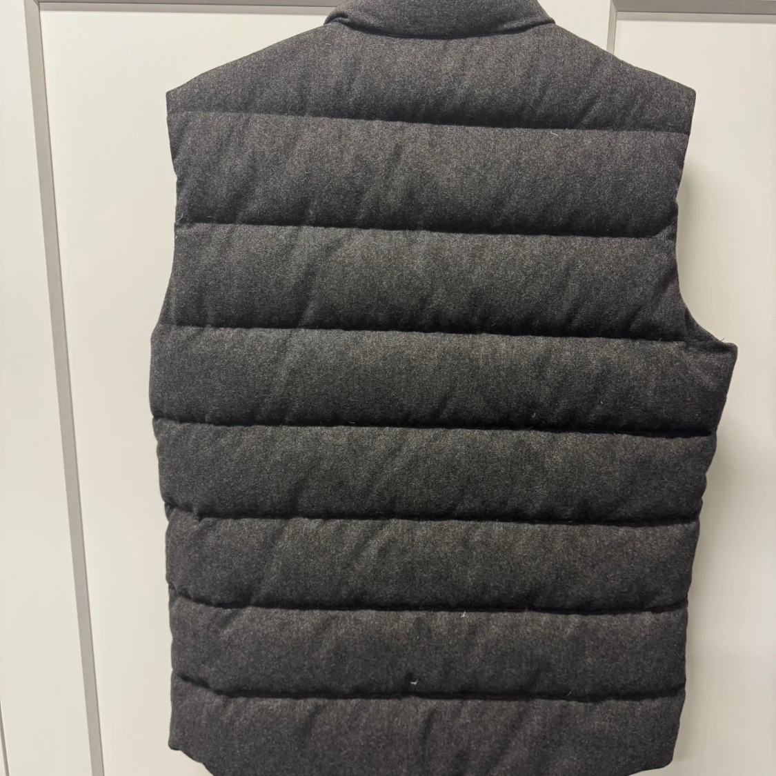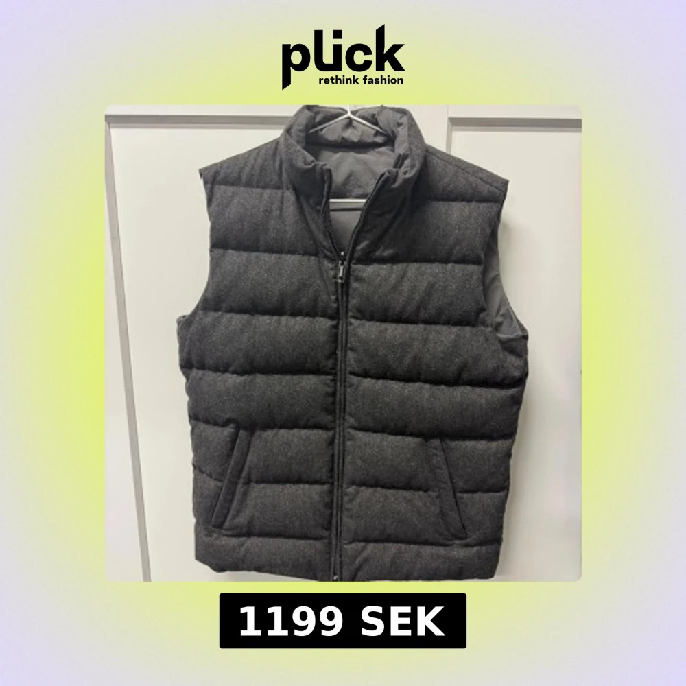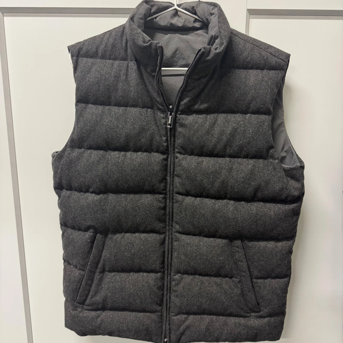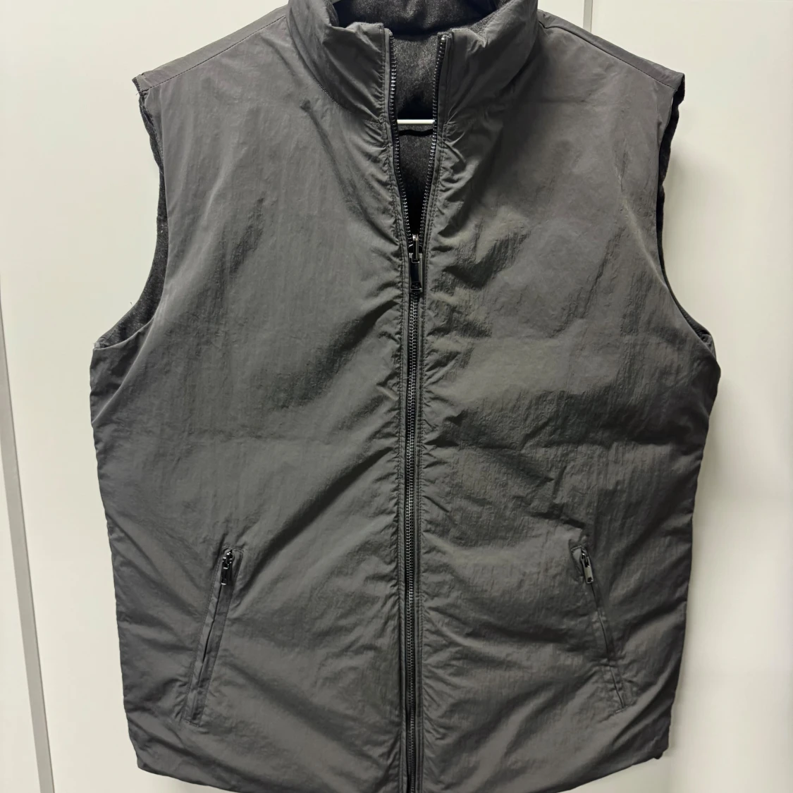 Snygg mörkgrå dunväst från Volt. Ena sidan har en mjuk ull-liknande yta och den andra är slätare i syntetmaterial, vilket gör västen vändbar. Perfekt för lager-på-lager under kyliga dagar.