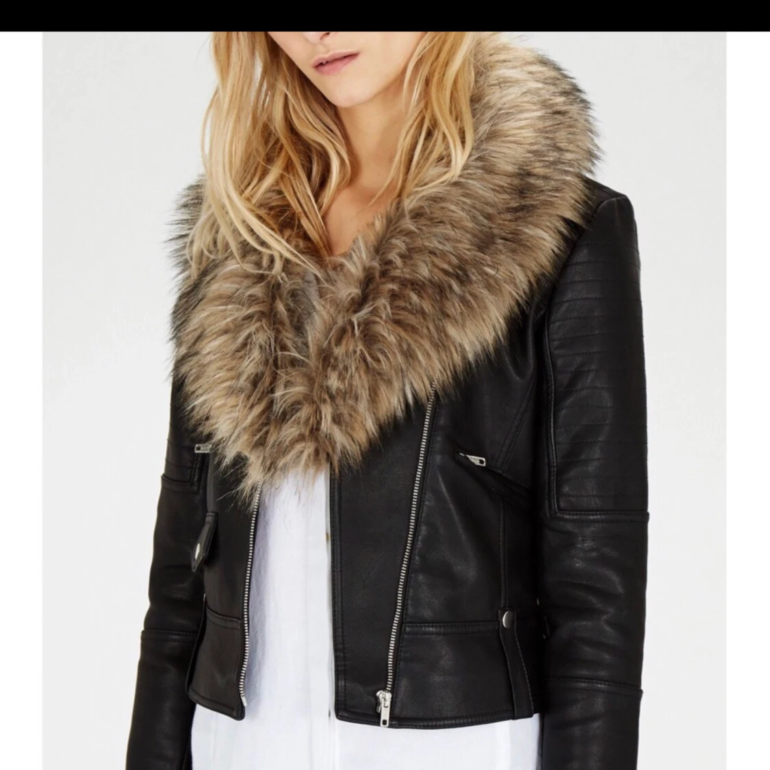 Använd i princip 2-3 gånger pga fel storlek. Strl 38, passar en 36-38a. Perfekt skick! Fin och fluffig päls! Inköpt för 1499:-
