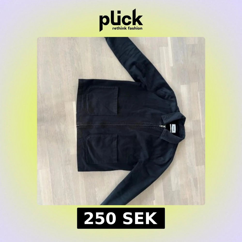 Säljer en stilren svart jacka från Weekday i storlek L. Jackan har en dragkedja framtill och två stora fickor. Perfekt för en minimalistisk look.