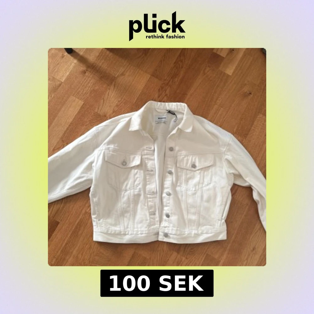Vit jeansjacka från Weekday. Klassisk modell med knappar framtill, två bröstfickor och raka sömmar. Jackan har en croppad passform och långa ärmar. Aldrig använd. Pris kan diskuteras!