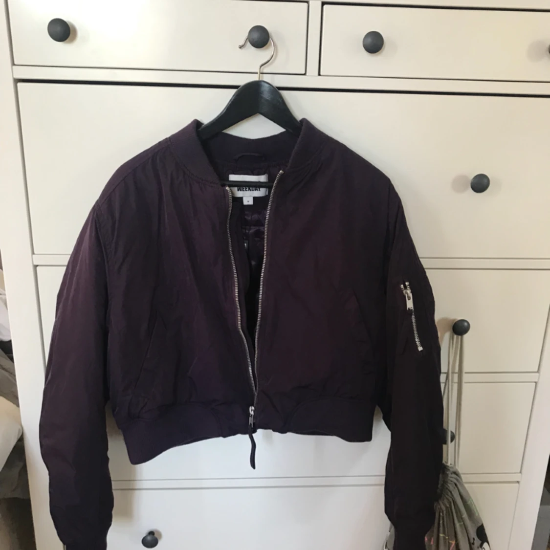 Bomber från Weekday med prislapp kvar, aldrig använd. Kostar 700kr från början! Klar plommonlila färg!:) Märkt som M men passar även S Frakt: 90kr🎈💌