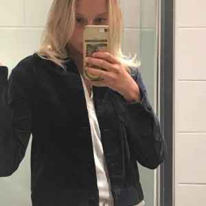 NP:700kr . velvet jacka från weekday, skitsnygg knappt använd. finns en extraknapp. mörkblå. kort