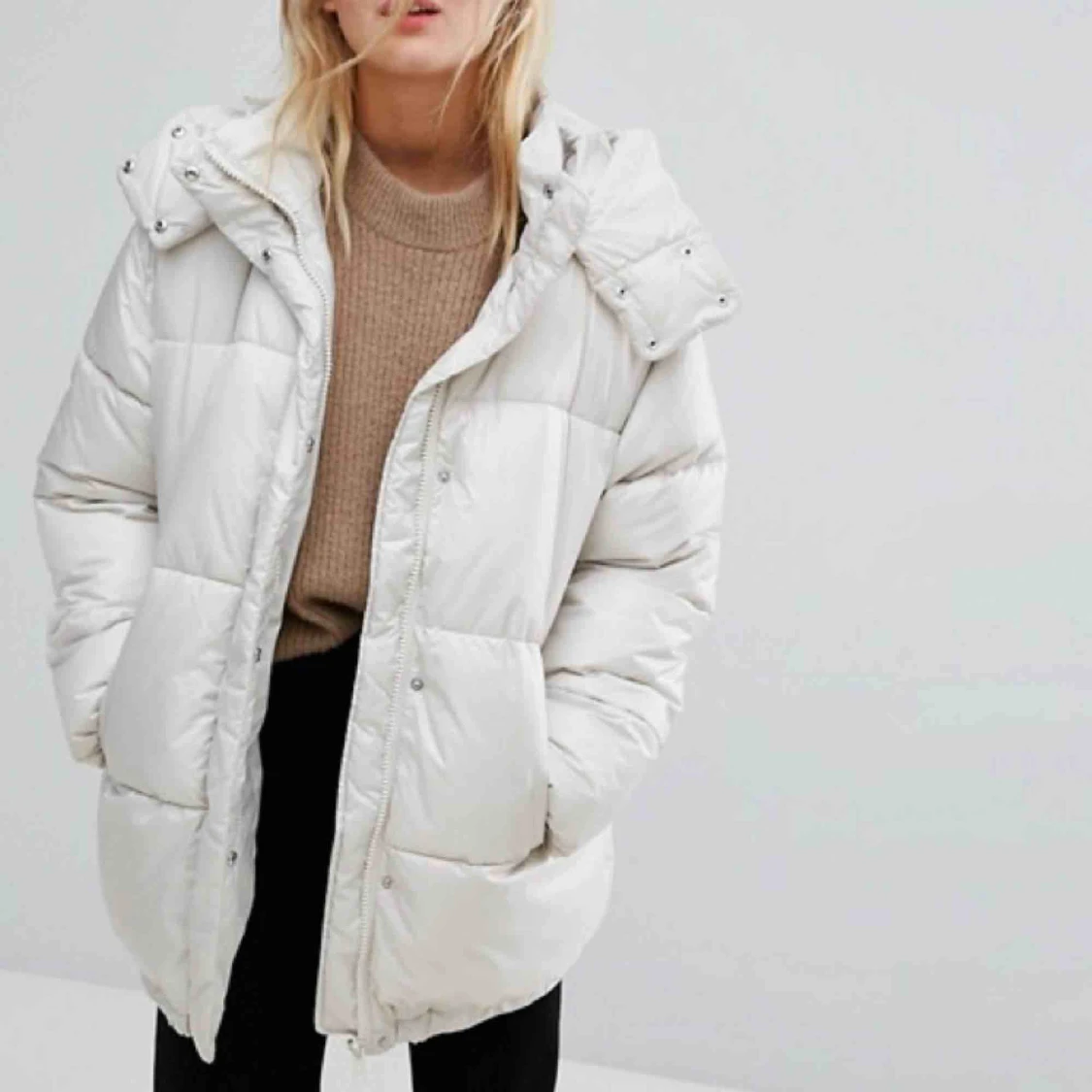 Vit oversized puffer jacka från weekday, perfekt till vintern. Storlek XS men passar upp till M eftersom den är så pass stor i storleken. Nypris ca1000kr. Använd max 10 gånger. Köparen står för frakt:)
