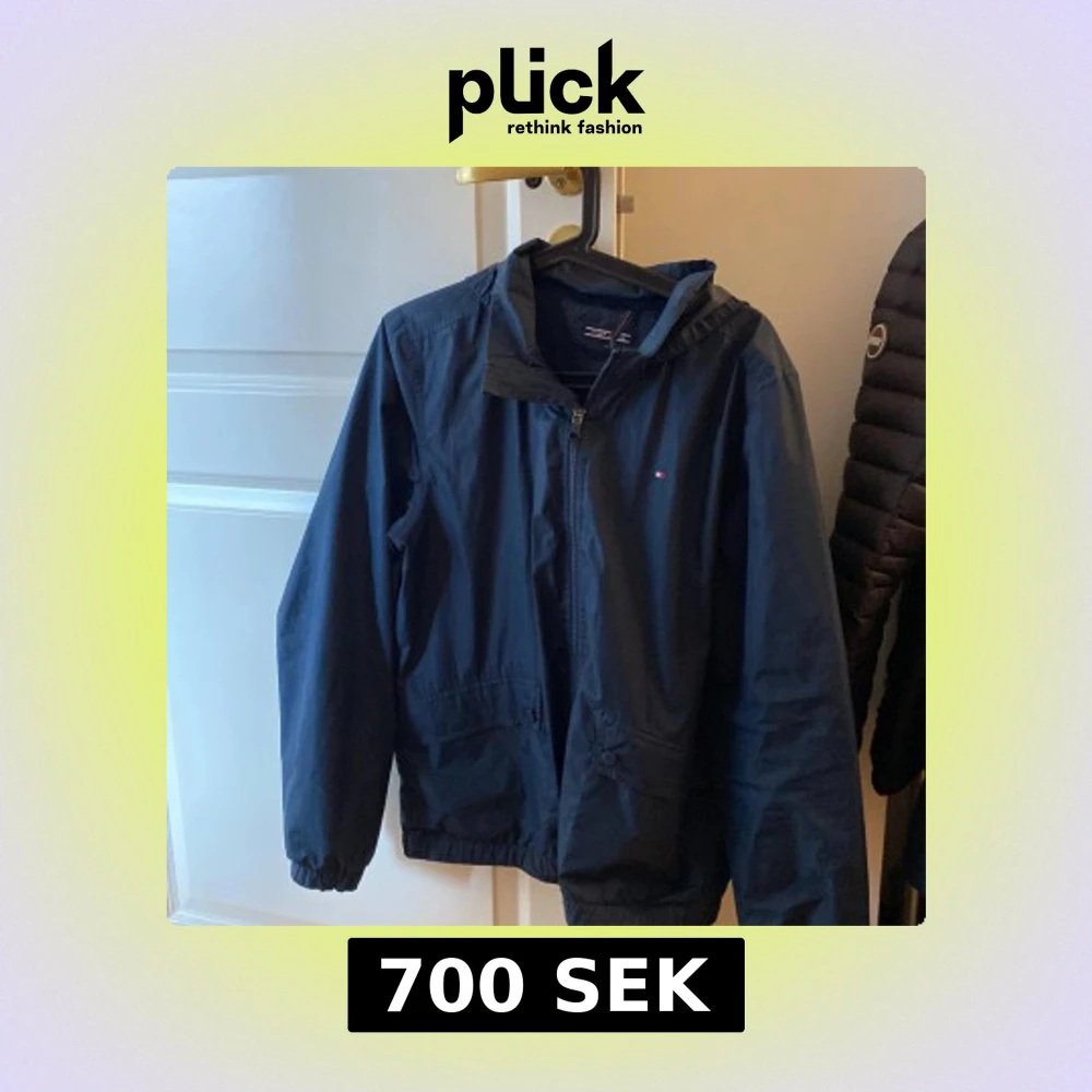 Riktigt najs Tommy hilfiger windbreaker jacka! Storleken är 176, men är som S. Hängbandet på etiketten är av men är fortfarande en riktigt skön jacka.