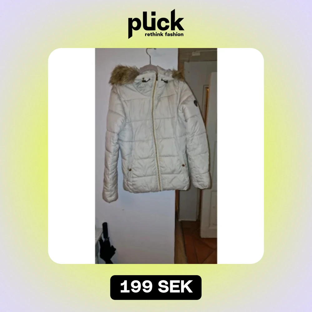 Off white vinterjacka med guld-detaljer. Den är fin och håller dig varm under även de kallaste vinterdagarna. Näst intill oanvänd, i bra skick.
