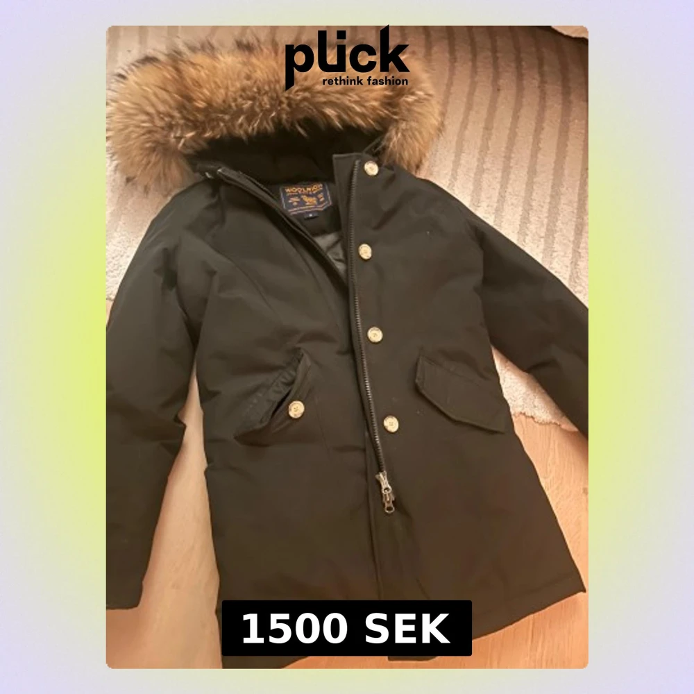 Svart parkas från Woolrich med fluffig päls på huvan, snygga knappar och dragkedja framtill. Jackan har två fickor med lock och är perfekt för kalla dagar. Klassisk och stilren modell som är lite längre i passformen. Säljer eftersom den är för stor på mig, priset kan diskuteras